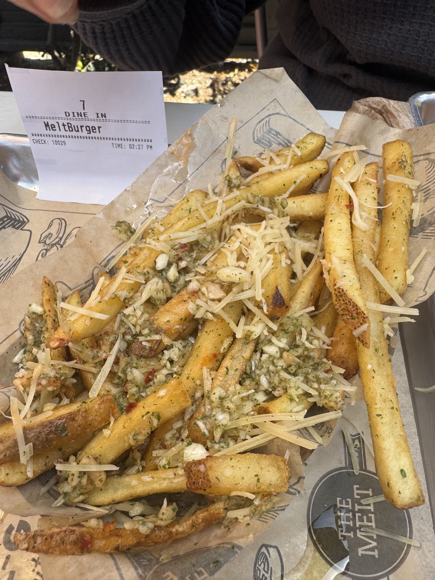 We were greeted with a nice man with a welcoming smile, eager to answer questions about the menu and suggestions. We ended up with a Swiss and mushroom burger and two melt burgers an order of garlic parm fries and an order of regular fries and a small Mac & Cheese for our little guy.