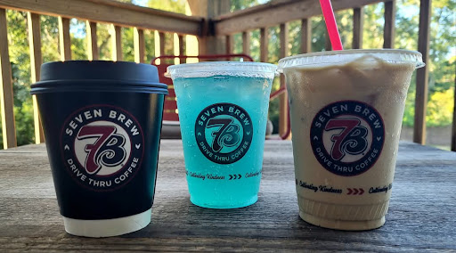 Read moreWe tried 7 Brew Coffee recently. Looks like a fun place to work if you have a teen. Music going and they’re running it like Chick-fil-a with two lanes🎉 Pray for the one adult manager😂 Let’s take a moment and celebrate the hours this place is open! It’s a monumental occasion to see a coffee place open until 10/11pm here! I ordered an iced coffee with cream and my husband got a black hot decaf. There is no drip coffee here. They make & charge the ice/hot coffees off espresso shots. Being from the Motherland of Starbucks and our love for coffee we both agreed the coffee is a dark roast leaning towards Starbucks brew more than Dunkin. This is the place to ask for extra cream or get a flavoring. Personally I’d just get less espresso shots. There is outdoor seating. Pricing is fair and similar to Dunkin. Ours was $7.67 for the 2 large drinks. Every 10th purchase of coffee is FREE🤩 Just ask at drive-up about the rewards program. They enroll you with your phone...