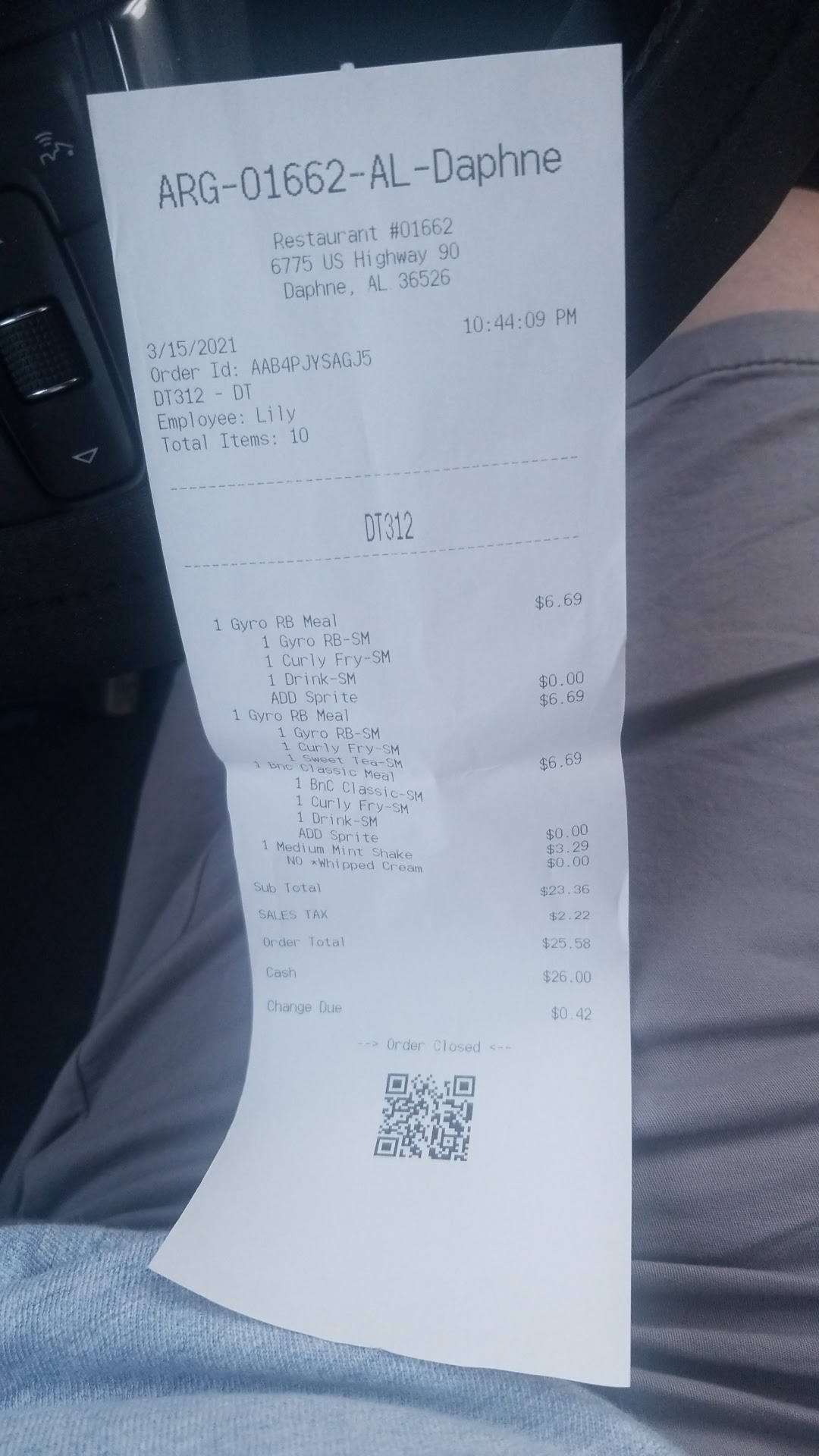 Read moreI live in the area and stopped by for a large Dr. Pepper on my way out. After paying $2.50 and leaving the drive thru window I took a drink and it had little to no syrup. Now you know when dispensing sodas if it’s clear it’s not any good so why would the person at the window sell it that way? I called and spoke to the manager who turned and asked the person at the window “is the Dr. Pepper out?” The response was “yes.” Again why serve it that way? Although the manager apologized and offered a free meal, this lack of personal accountability should have no place in...
