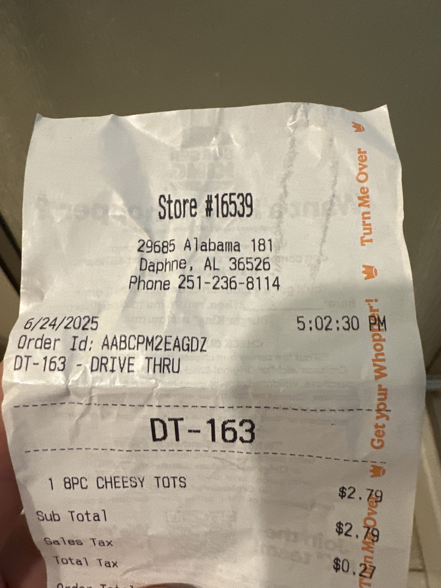 I visited the BK in Malbis about 45 minutes before closing on Saturday night. The person who answered drive thru was rude and mumbled everything she said. She "greeted me" by saying "the only thing we have is whopper and burger meat" and when I asked her what she said she ignored me for several minutes and then said it again. I asked "so basically no chicken? Is that what you mean?" She never answered me. I gave her a coupon code and she mumbled some stuff at me again and when I asked if she was asking for the expiration date, she was rude again and spoke to me as if I were stupid. Finally, order placed, she told me it would be 8 minutes, pull around. At the window, she did not greet me or anything. She took my card, handed me the card and receipt, and closed the window in my face. 20 minutes later, she opened the window, handed me 2 bags of food in the same hand and nearly dropped them. She said "you got it?" and as I said yes, she closed the window and walked away. The onion rings were cold. Obviously she cooked them before the burgers were ready. 6 whoppers with cheese (not a single one had cheese) and a small onion ring (charged me for a medium but I let it go) and terrible service. I will not be visiting this BK again! This is absolutely unacceptable and if people would hold businesses accountable for trash like this, maybe, just maybe things would improve. Stop paying people to be rude and mess up your food, time...