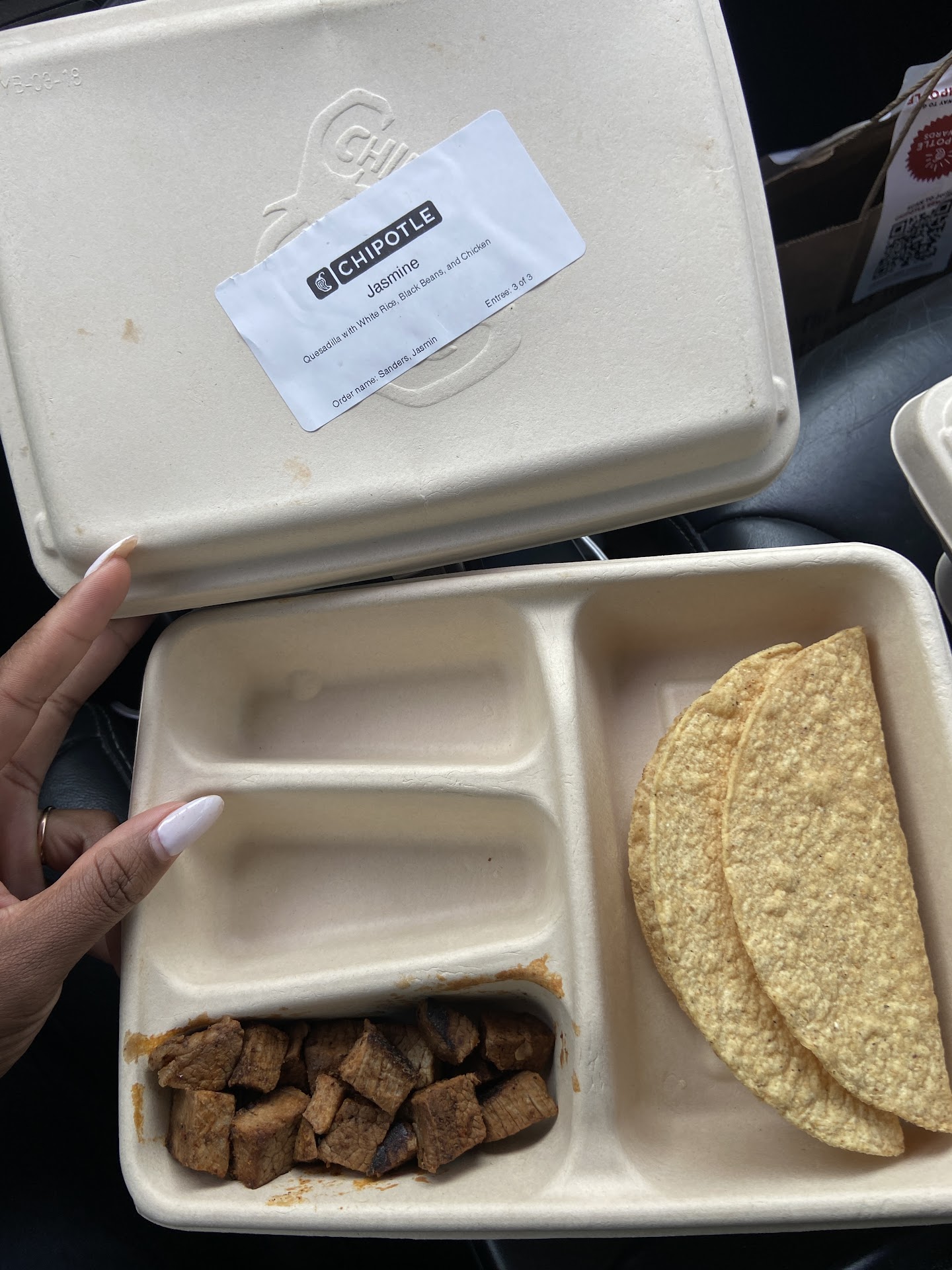 Read moreI donât usually leave bad reviews, I have eaten at this chipotle many times and it gets worse and worse. The first time I ordered her the chicken was hard to eat and I had a long piece of blonde hair in my guacamole. I do mobile orders and they I watched how they measure the portions they literally do not use a spoon. They use a small sauce cup to measure protein portions. They gave me literally a half cup of queso for my side. This is by far the only chipotle Iâve ever been to that gives such small portions. Aside from that, the food doesnât taste like other chipotles. The cooks over cook the chicken and the rice has been crunchy a few times.