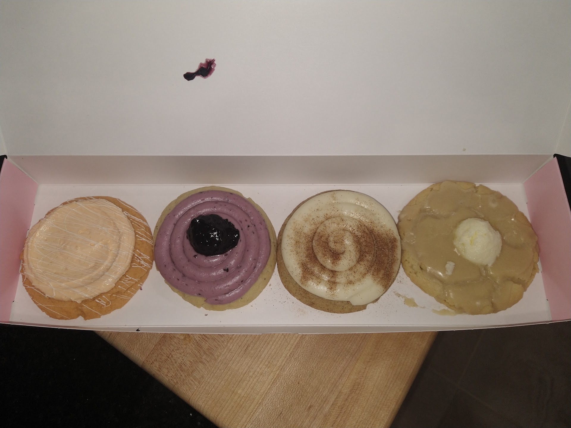 This was my first experience with Crumbl. I heard about the place and went online to see what they were about. I saw that they have an app which allowed me to order what I wanted and determine when I would like to pick it up. The transaction was super simple and fast. I ordered a 4 pack so I could try some of the more unusual cookie types. These were huge cookies. The decoration was done nicely. I had orange-cicle, blueberry lemonade, snicker doodle cupcake, and maple pancake. The one that tasted most like what it represents was the orange-cicle cookie. It had a strong orange flavor and was something I had not tried before. I enjoyed the 4 cookies for a cost around $12. No... I didn't eat them all in one sitting. I know you were wondering.