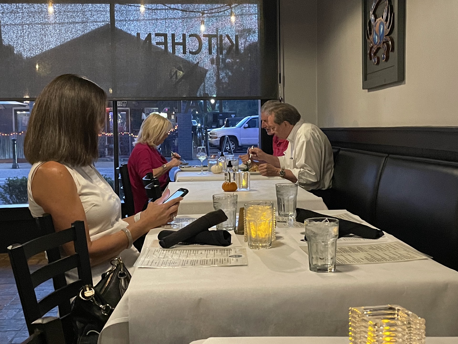 I used Google Maps to find the business and to see what their hours were. I saw they had a wonderful Facebook page, and noticed that they accepted reservations via text message. I typed in my message indicating we were looking for a reservation between 6:30 and 7:00 PM for the Tuesday evening, and within a few minutes I had a return reply asking for how many and my name. Shortly, they responded with a message indicating we were booked for two at 6:30 PM. I was impressed!