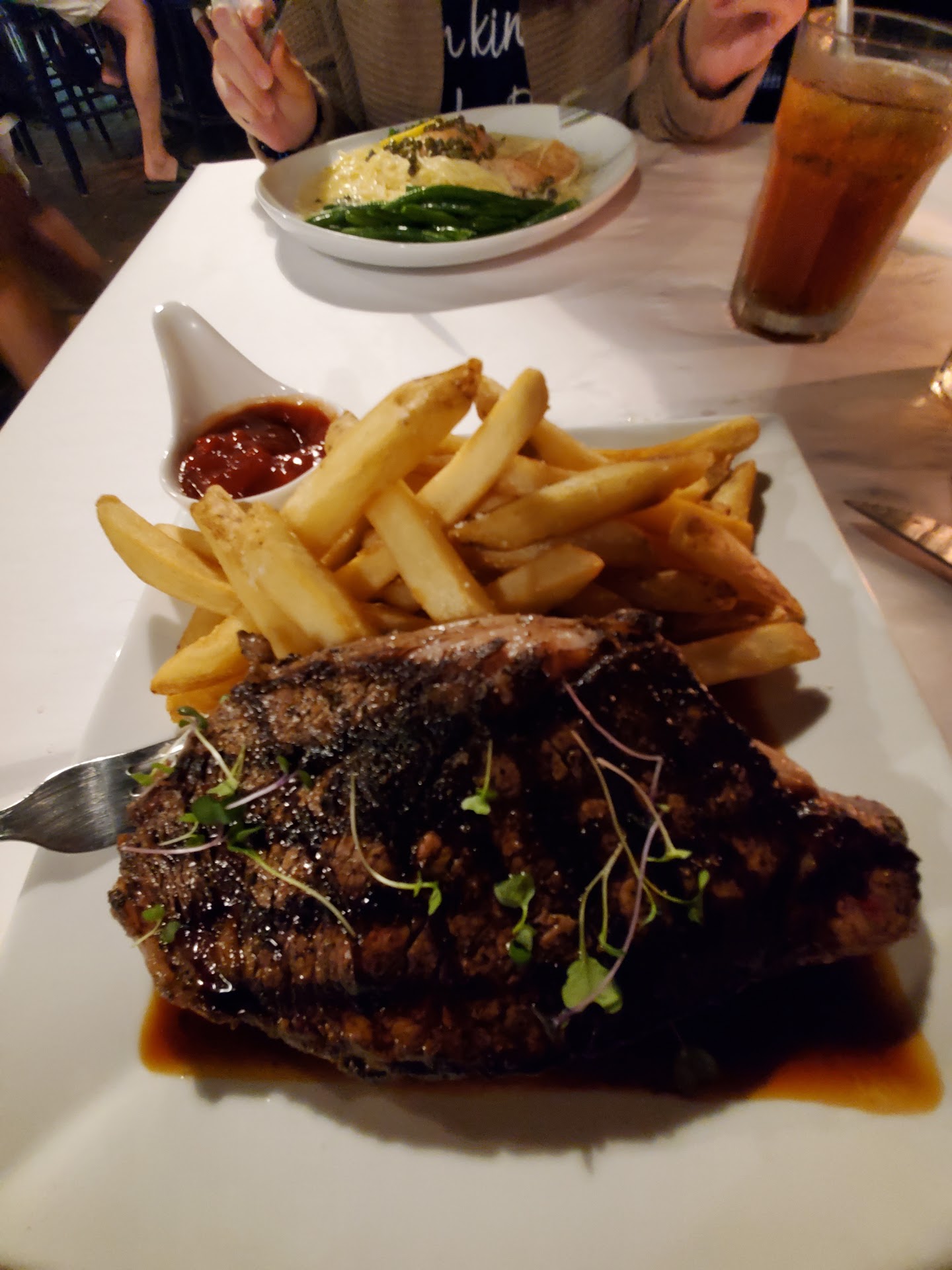 Our friends had a side salad that was huge. Looked pretty tasty, but they didn't say much. They had the beef filet and same fish as my wife. They seemed pleased and to enjoy it. I'm just a picky person that won't give out stars without merit.