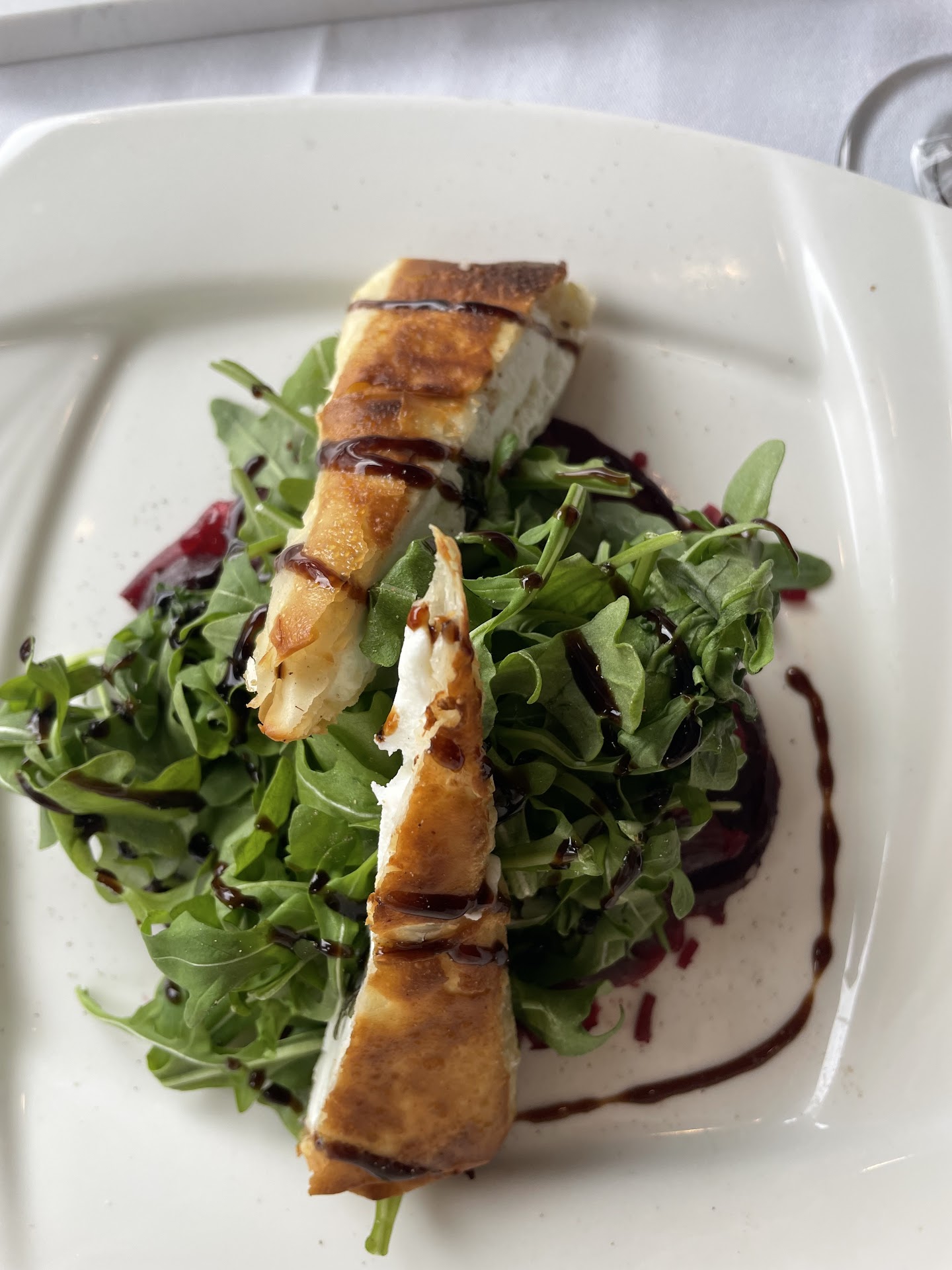We had looked forward to dinner here, especially after seeing the great reviews, and to say underwhelming is an understatement. We started out with limoncello martinis. My g/f arrived before us and hers was pretty with a floating circle of lemon...mine arrived with a wedge on the side of the glass like it was iced tea. Not as esthetically pleasing and so odd it wasn't served the same way. Although, it was tasty. For appetizers we had fried calamari, which is very light, and the burrata and prosciutto. These were both nice. For mains, I had been craving the lamb and was so excited to try it; it was served over cooked and with steamed(?) brussels and purple cauliflower, which was so mushy, bland and tasteless I had to add salt (which I never do). The Fish portion was miniscule and again, zero flavor. (Note, I rarely use salt in my dishes and for us to ADD salt is saying something.) At this point in our dinner the fire alarm started going off. Everyone stopped talking, looked around for smoke/smell of smoke, but servers simply went and opened the front and back doors as if it happens regularly. Nothing was said or anything. A few minutes later the firetrucks arrived. Again, no apologies or even an acknowledgement from the manager walking around. I mean, it happens, but for there to be ZERO said or simply, "Apologies for that..." rubbed me wrong. Our friends got a pistachio cake for dessert, which they liked. Our server was lovely, although seemed to have too many tables. We had to ask for extras like plates or knives, etc. I'm not sure why it was so off for us, when apparently people really love this place. Maybe we'll give it another shot...but with other options I already love more,...