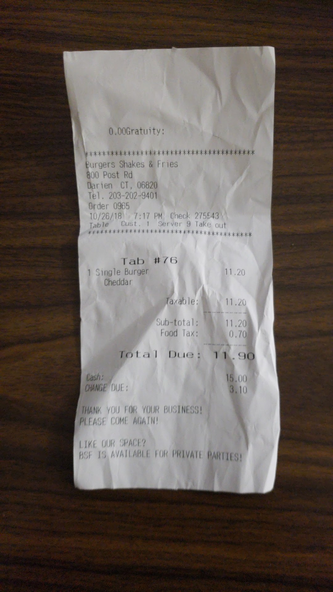 Read moreThis location definitely has issues compared to the Cos Cob/Greenwich location. The wait staff simply doesn't follow directions/requests. We travel from Westchester county to Darien Connecticut. It takes about 40 minutes. When placing an order we ask to delay the food being made So it doesn't get cold before we get there. They assure us they won't and then proceed to immediately make the food and let it sit on the counter for 30 minutes before we get there to pick it up. We pay $26 per burger x2 and get ice cold burgers with soggy buns and fries that you can throw in the garbage. All because the wait staff does what they want instead of what the customer wants. I've spoken to the owner of this establishment in person, he's a very nice gentleman. But he needs new wait staff desperately. You can thank the only female server on this date at 8:30 at night for my review. She is the face of your business, and your business no longer has this customer...