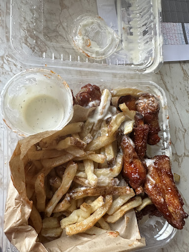 Read moreI got the garlic parm wings, and fries. Very good chicken, and fries were also great. My only 2 complaints is that some of the wings were really small, and there was 1/2 inch of grease on the bottom of the box. Other than that, it was super good, and I will be...