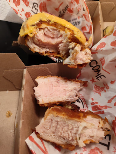 Read moreI would not eat here, at least not at night. I placed an Uber eats order yesterday and got it at 730pm. The chicken I received was raw and I also was given the wrong drink. Don't know if the night cooks just didn't care whatsoever if the food was properly cooked but they need to be checking that thick of a piece of chicken with a thermometer if they aren't cutting it to make sure. I wouldn't waste my time with this place ever again. Don't pride your whole restaurant on think cut chicken sandwiches and not even make sure that they are cooked all the way. I had two bites out of my sandwich before noticing it was kind of pink and then decided to check the one I got for my boyfriend. When I say raw, it was still pink and jiggly in the middle. I sent in a complaint to Uber eats since that's who I ordered through. Sent them pictures of the sandwiches and threw the food away. I started to feel funky couple hours later. And didn't want to end up in the hospital with food poisoning so I made myself throw up as much as I could. It was fun thinking I was gonna get a good chicken sandwich and then dealing with all that the rest of the night. Best believe if I end up in the hospital, I will be send the bill your...