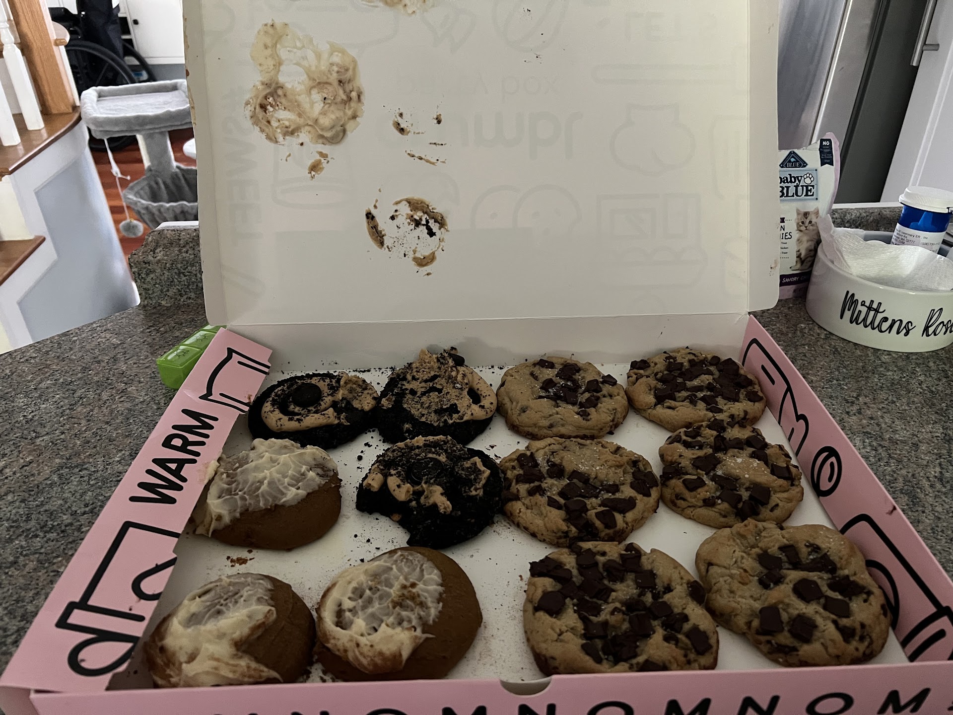 Update 9/11/23: I placed my first pick up/ walk in order after raving to people at work about these cookies. I made an 11:30 pick up (at 10 am) - I did not leave Crumbl until 12:30 pm. The experience was horrible this time, the first employee who helped said the cookies would be out in a few minutes, then was told they could not find my online order. Finally after being âfoundâ I was told that the cookies I had already paid for were sold out. Mean while every walk in customer ordered the same cookies I pre ordered, and left with no problem. I was then told curbside/ walk in orders are last priority, and I would have to pick different cookies since being sold out. The first employee who originally told me my order would be out shortly, with my name being 2nd on the log board had left the building without even acknowledging me or saying my order should be out or that there was the problem of not being able to find it. That is when I then went through the headache with different employees of the order not being found, to the already paid for cookies being sold out. I understand this is still new, however the way this situation was handled actually made me not want to go back to this particular location. The fact that walk in orders would take precedence over pre paid makes no sense, and to be told that pretty much âoh well, what other cookie do you want.â It also defeats the purpose of ordering ahead.