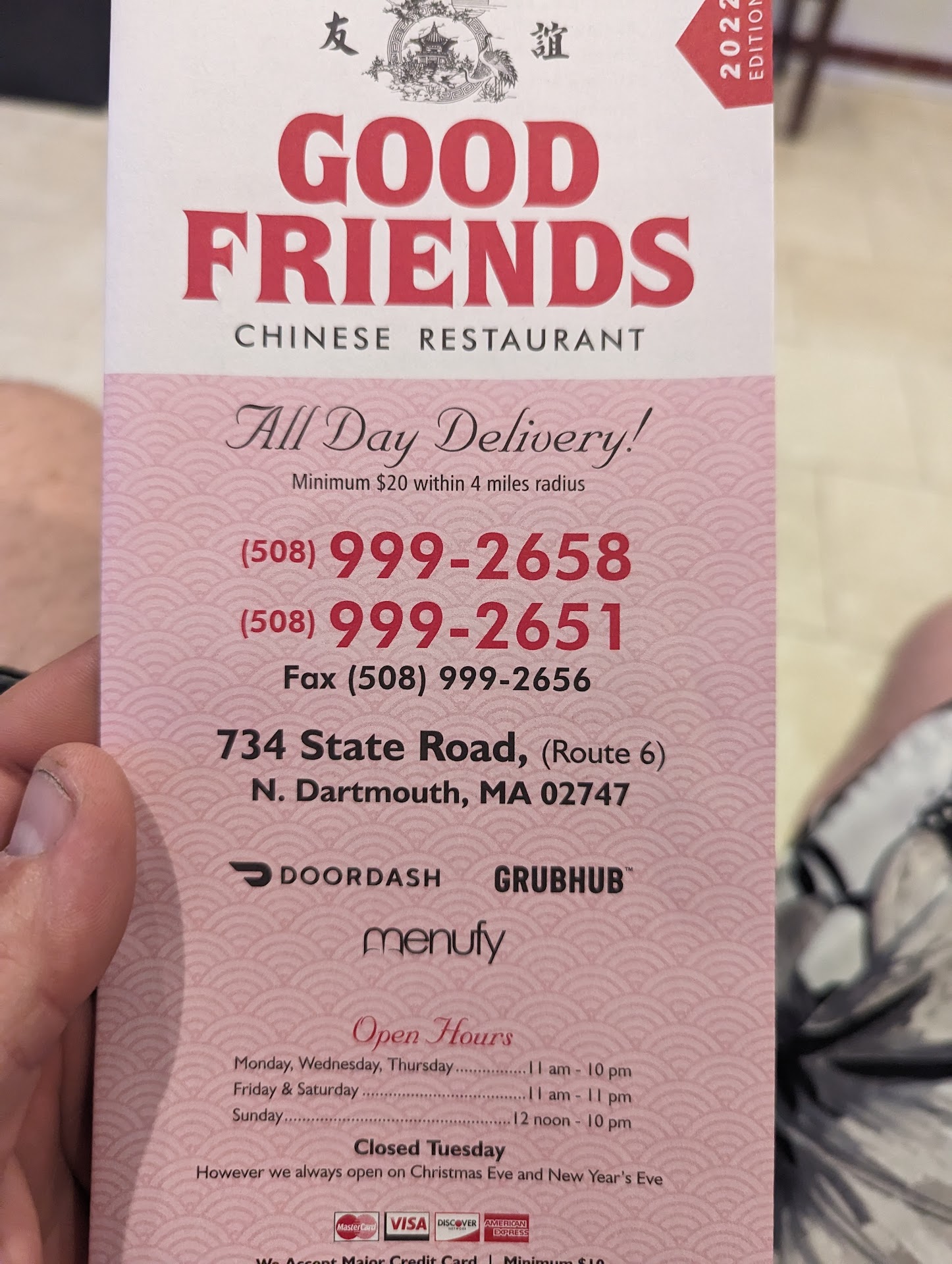 Gave us the wrong order when we call me explain that not only did we get the wrong food that we did not like but we were pa But we paid more than we should have in the 1st place at explain in this issue we were told to bring the food back we explain we did not live in this town who lived in the next town and it was not feasible for us to come back then we had to listen for minutes on end of lady yelling Chinese to the cook as he yell back for several minutes trying to interject and stop this crazy unprofessional behavior could not get their attention so I decide to hang up and handle it would the bank explained to me anybody who I should I eat food and a don't like when a in place that order and made it clearly and it was done on the Internet and we verified but yet the food we found in a bag was not the food we ordered but we were charged that only what we ordered but extra for what somebody else had ordered shame on them they should change their name...