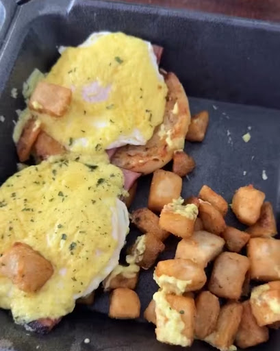 the eggs benedict was average at best. presentation left much to be desired. dry and bland. what hollandaise was on it saved it a bit but what doesn’t it save. portion size for the money was an insult. potatoes were not only a dinky portion size but legitimately unflavored and just hard and crispy. didn’t even seem like they attempted to add seasoning.