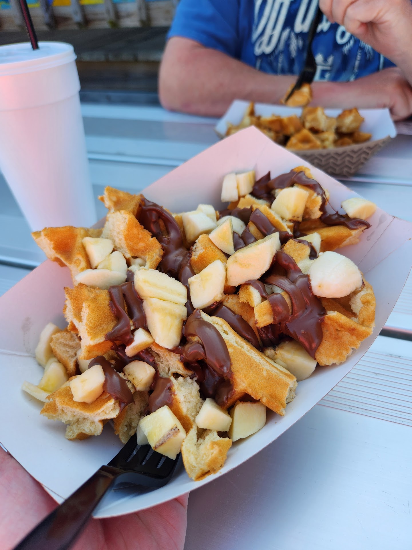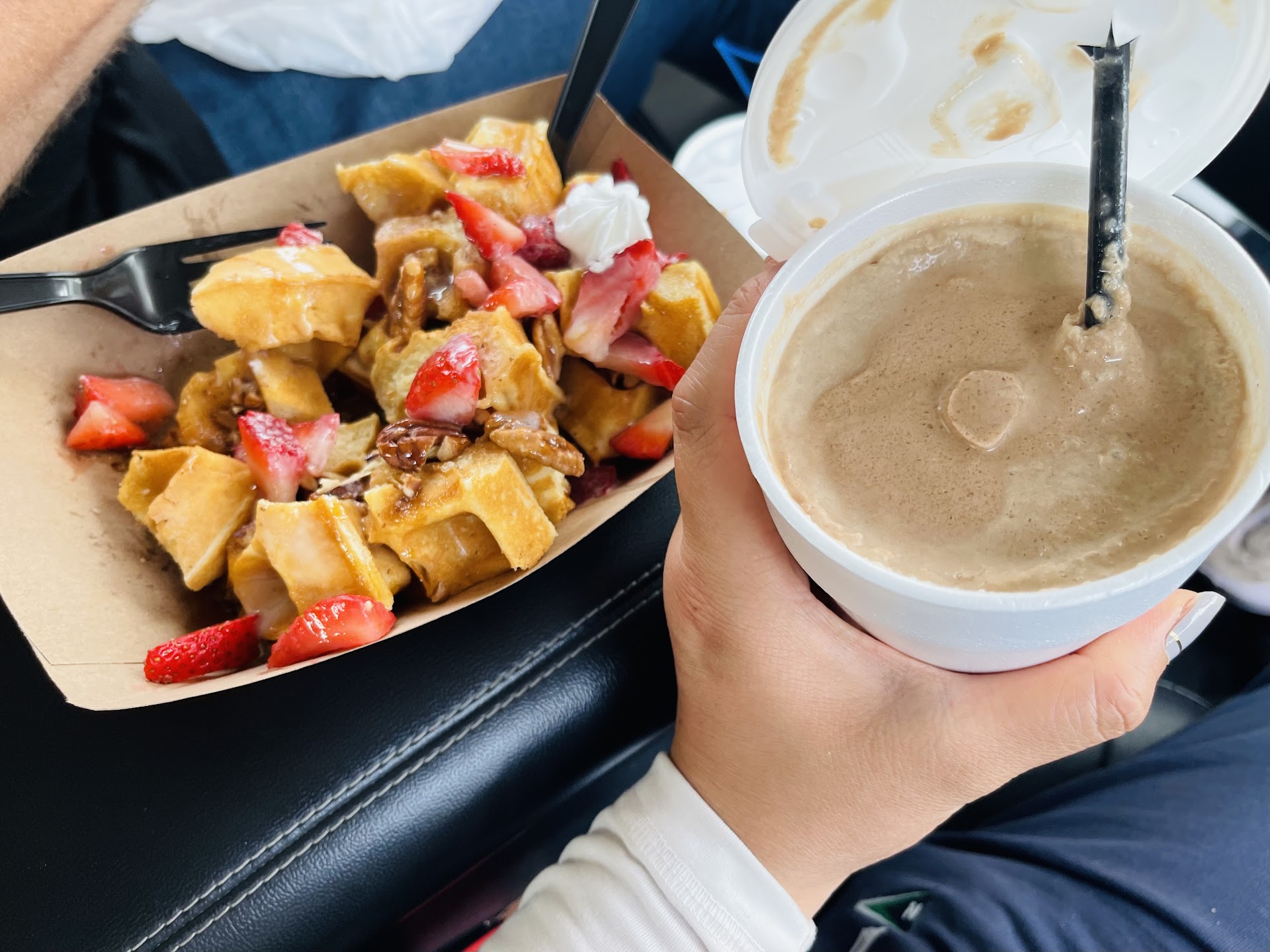 Read moreWe ventured far out to Foxy’s Waffle Bar today, drawn by the tantalizing photos of waffle boats teaming with delicious looking toppings. We were greeted at the window by a friendly woman who suggested we get the full sized waffle boat with strawberry & pecan toppings. The order came out quickly and did not disappoint! The waffle was fresh & piping hot, and generous amounts of diced strawberries and pecans poured all over, topped off by sugary condensed milk and caramel. Absolutely delicious! We also received 2 PB Delight shakes that were absolutely delicious - incredibly creamy and smooth, and just the perfect amount of sweetness. Perfect for this hot & humid day. Thank you, Foxy’s Waffle Bar (and kind lady), you...