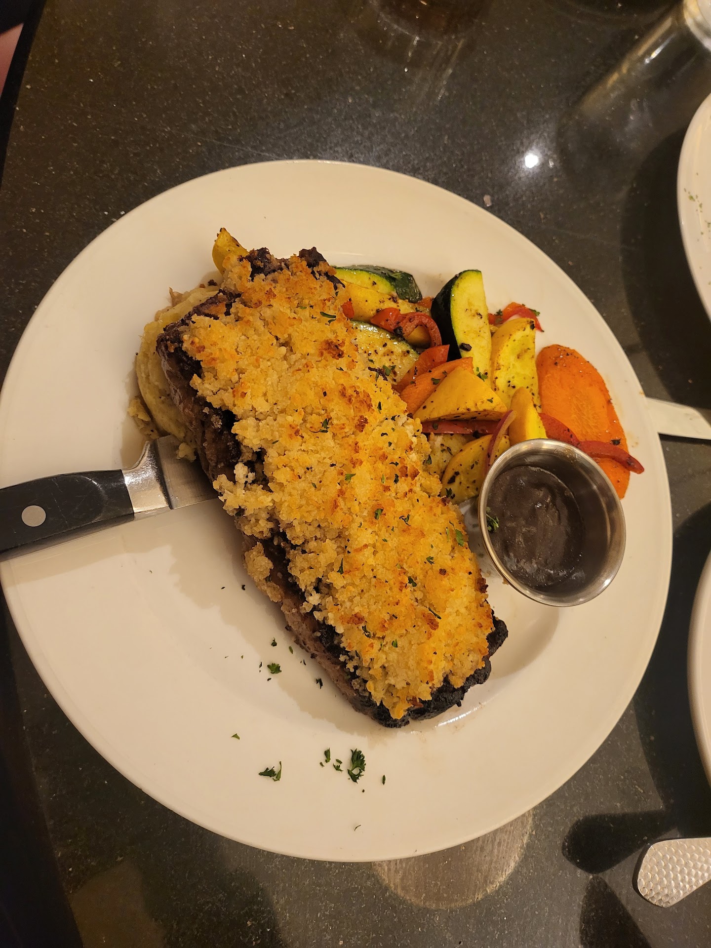 Great food, horrendous service! My wife and I, along with my parents and another couple visited Brix yesterday for dinner. My wife and I had never visited this restaurant, but our parents and friends had and raved about the food. We placed a reservation earlier that evening and arrived just before 8 pm. The restaurant was not busy as only a few tables were seated, plus half a dozen people at the bar. We sat waiting for 15 minutes and just as we were about to head to the bar to place a drink order, the waitress finally checked in with us. At the same time, another party of 6-8 people were seated near us. After 5 of us placed a drink order and my mom requested a sample, we waited another 10 minutes to get our drinks and bread. Unfortunately, rather than wait to see whether my mom liked the wine sample to order a glass, she left and didn't return for another 15-20 minutes. We are now almost an hour in and barely able to place our food order. After 45 minutes, we still hadn't received our food, a refill on our waters or our drink orders, nor seen/spoken to the waitress when she comes over to offer us a free round of drinks because of the delay. However, as she was pouring our free round of drinks, the group that arrived 15 minutes after us were being handed their food! No explanation as to the delay or why the other group's orders were being delivered, just an apology and our food arrived 15 minutes later. Again, it was not very busy - only a handful of tables were seated, the hostess prepared tables, a bus boy delivered our drinks and cleaned up a table or two, and a short-blonde haired woman was helping deliver food. We even seen the chef come out in his grey chef coat and meander around the tables and disappear within 5 minutes. Obviously, we were not happy with the service and planned to reflect such in our tip. After finishing our food, we waited another 15 minutes to receive the checks at which time the waitress advised the gratuity had automatically been added. Usually that is fine with me, given a larger party, but after a night of terrible service and waiting over an hour for our food, management could have been more considerate and waived it - or even discounted the bill if they couldn't override the automatic gratuity! The food was delicious - Blackhawk salads all around, Beef Tips, and Presidential Pork Chop, but we could have had a delicious meal elsewhere and in half the time. After speaking with other family members and friends this weekend, it sounds as though this slow and terrible/dry service is a known concern. No wonder they weren't very busy, and now they lost both loyal and new customers in one night! I would have given 1 star, but the food was absolutely delicious and the restaurant/hotel was well-kept...