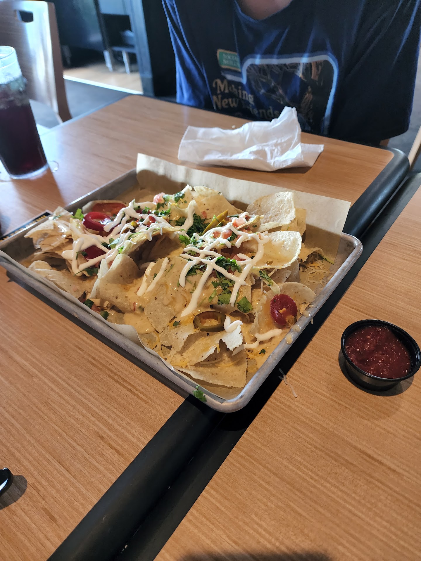 Ā Ā Ā Read moreNot sure. I will start by making it clear, it wasnāt necessarily busy but a 20 top table got sat right before us in our section, so a little wait was expected. Drinks did take a hot minute or 10 to get ordered but we were enjoying ourselves so it was fine. The guy finally had made it to us and got us our drinks right away. The real fun started 20 minutes if day later, the waiter comes back, and asks to sit down with us to take our order? I mean sure why not, just was⦠different. Waiter was pretty nice but did seem stressed and tired. Waiter took our order, and went and potentially stabbed the order?? We did realize the large table got their orders ahead of us, but after 30 minutes, they all got their food and we were like ah cool now our turn šš. nope š. It took Iād say another 30 minutes for MOST of our food⦠except mine. I ordered boneless wings, everyone else had ordered sandwiches. I did find out wings DO take longer, but itās was a good 15-20 minutes later. Finally I did get my food and ate lonely as everyone else talked over empty plates which was whatever, but oh no the fun doesnāt stop here. The ambience was just stellar with nearly every table being dirty not just with crumbs, but full on plates, cups napkins and stayed dirty from the time we sat down, and were still all dirty when we left after 2 hours. None of this was our servers fault, I honestly felt bad for him. wont probably be returning but it was a different change of...