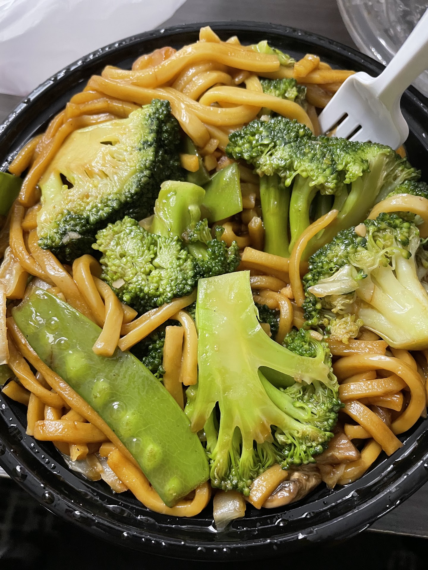 Speaking of the food: it was bland and lifeless. The Mongolian beef had no green onions or green peppers, and the meat was definitely not steak. It was some sort of soft, mushy beef substitute. The sweet-and-sour sauce was straight from a bottle or packet, not made fresh in-house. Not a single condiment was included with the meal—no soy sauce, no mustard, no fortune cookies, nothing.
