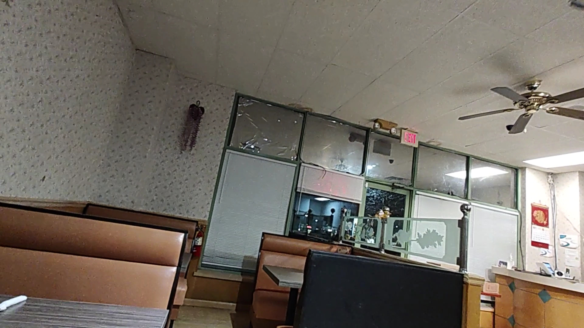 The place is pretty much as I remember it. In fact, it's exactly how I remember it, just a little older and more worn in a few places. The tables and booths appear to be new from what I remember, but everything else is showing a bit of wear. The wood floors, which still appear left over from a gymnasium or dance studio, are pretty much the same. The drop ceiling and accent lights are showing some wear, as is the fading wall paper along all the walls. None of this is bad - it all comes together to put off a lived-in, hole-in-the-wall appearance. I kinda like it.