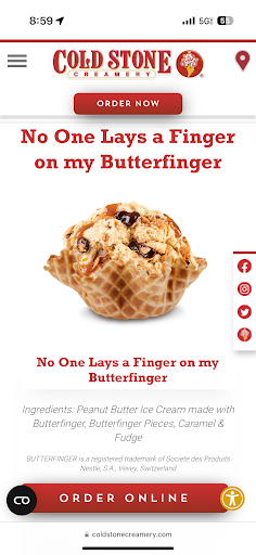 Read moreThis experience was actually the worst I’ve had at an ice cream parlor. My husband and I ordered online an hour before closing, I ordered No One Lays a Finger on my Butterfinger with added brownie and he ordered Reese's Peanut Butter Awesome Sauce with extra Reese’s. It cost $20. We drove 15 minutes home to realize all we were given were 1. A scoop of freezer burnt vanilla ice cream with no mix ins and a small brownie on top and 2. A scoop of freezer burnt vanilla with a Reese’s on top and no mix ins. By the time we returned to the store it was 8:55 pm, my husband went in to fix the order and was met with a response from the worker that “we don’t have butterfinger ice cream” which isn’t even used in No One Lays a Finger on my Butterfinger, and instead of stating this when we picked up our order and asking if we wanted something else he just gave us a scoop of vanilla with a brownie on top and had his back turned to us upon our arrival, almost avoiding us. I am highly upset because this cost me $20 all for nothing as we didn’t even eat the ice cream. I’m just confused as to why not having butterfinger ice cream means he couldn’t use the correct ice cream and add the other mix ins that are included in BOTH items such as the peanut butter ice cream, fudge, caramel for mine and the sweet cream ice cream and Reese’s and sauce for my husband.