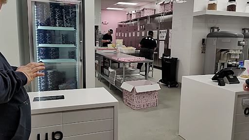 Another interesting feature is the ability to order from touch screen stations to the right of the entrance. I'm fairly certain this is the norm - there did not appear to be anyone working a traditional register. It also seems that you can order ahead and pick up, which seems especially useful for larger orders. It worked well for me - I ordered my one pink frosted sugar cookie and had it in a matter of minutes.