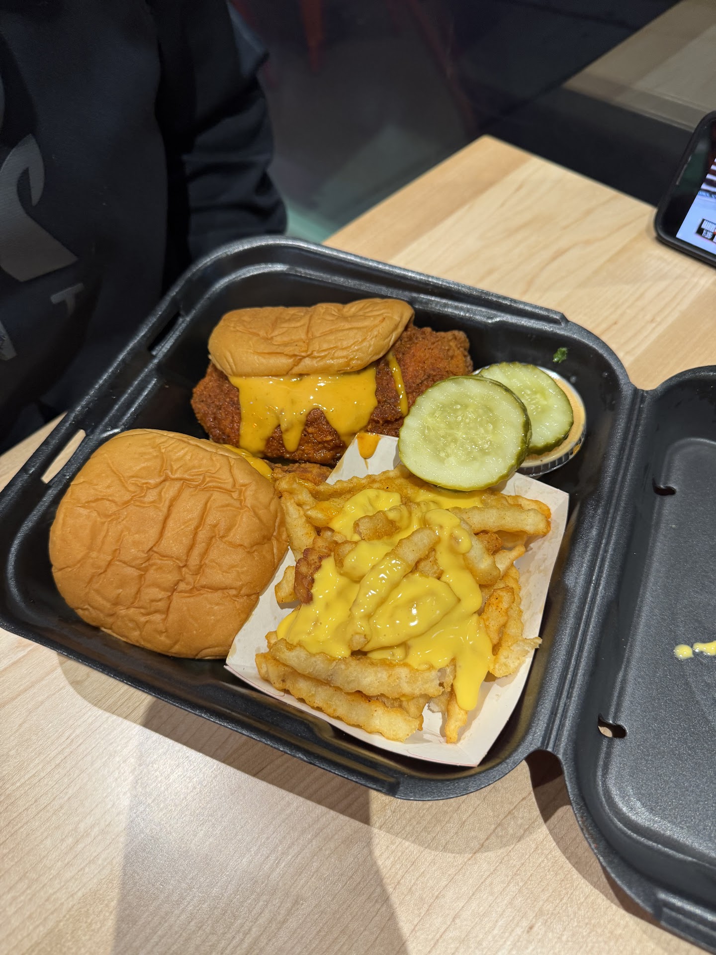 A Fiery Feast at Dave's Hot Chicken As a lover of all things spicy, I was drawn to Dave's Hot Chicken by the promise of Nashville-style hot chicken with a kick. And let me tell you, they did not disappoint. The "Hot" level of spice was a fantastic balance of fiery heat and delicious flavor, a step up from the "Medium" but not so intense as to overwhelm the taste of the chicken itself. The star of the show, of course, was the chicken. The tenders were incredibly juicy and tender on the inside, with a light, crispy breading that held up perfectly to the signature "rub." The slider, a masterful blend of that same chicken on a soft potato bun with crunchy pickles and kale slaw, was a true delight. The combination of textures and flavors was a symphony in every bite, with the cool, crisp slaw and pickles providing a welcome counterpoint to the heat. Speaking of the heat, Dave's Hot Chicken has a range of seven different spice levels, from "No Spice" all the way up to the legendary "Reaper." This is a great feature, as it allows everyone to find their perfect level of heat, whether they're just starting their spicy food journey or they're a seasoned veteran. The fries were a worthy sidekick, perfectly crispy and seasoned. They were the ideal vessel for sopping up the delicious Dave's sauce. The sauce, a creamy and tangy concoction, was a perfect match for both the chicken and the fries. Overall, Dave's Hot Chicken is a must-try for any fan of Nashville hot chicken. The quality of the ingredients, the perfect execution of the chicken, and the range of spice levels make it a standout in the fast-casual space. It's a fiery feast that will leave you...