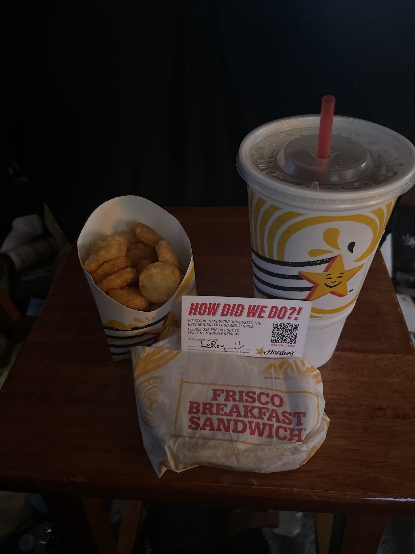 Read moreBreakfast was good, but went downhill 6+ months ago (May 2021) and I didn’t go there regularly anymore after getting salt dumped on my breakfast. I thought I would give them another try and got a burnt biscuit. They know it’s not something to serve but I still got it. I took a photo and complained. Several e-mails back and forth and I’m promised a gift card. That was over 2 weeks ago. Hardee’s lost a customer. Anything but breakfast and it was often wrong, old, dried out, added condiments when I asked for it plain, old fries, wrong fries. They used to at least have a good breakfast. Now there are a bunch of employees who could care less if you are a customer or if you care about getting a decent piece of food. Hardee’s on Division St in Davenport IA sucks. Their staff doesn’t care about what they serve and corporate (KAITLYN P) makes empty promises.