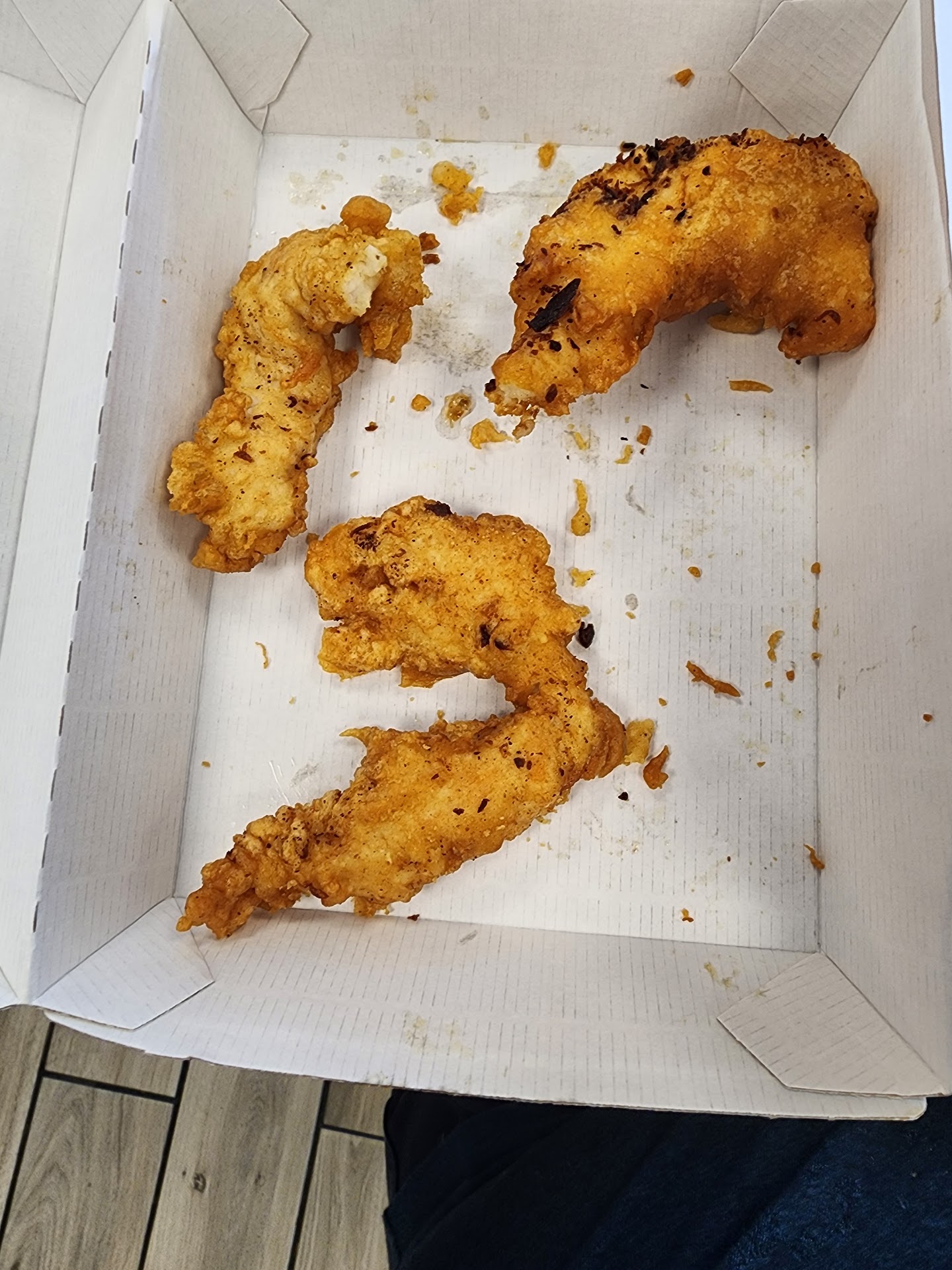 Bill came out just under 80 bucks, lady was nice at the counter, food tasted okay, but the chicken planks weren't even planks, half of them were little tiny pieces, like they ran out of chicken tenders and we're just trying to take scraps and make it into planks.