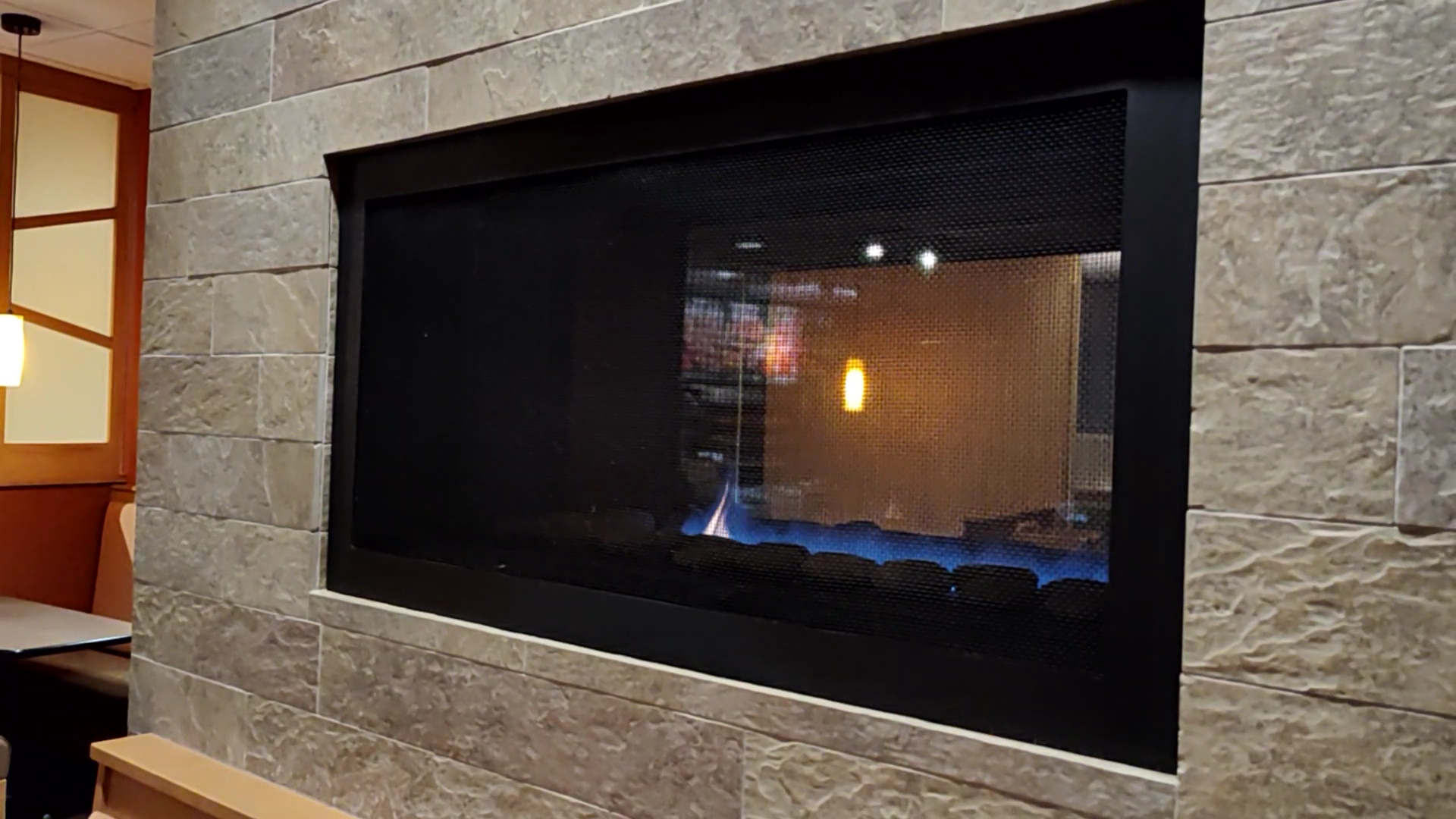 This Panera is definitely very similar to the one closest to my home. Clean and comfortable table and booth seating throughout, a drop ceiling with 2x2 tiles containing a mix of recessed and accent lighting, and a pair of comfier chairs in one corner. This space also has a fireplace with actual fire. That was pretty cool.