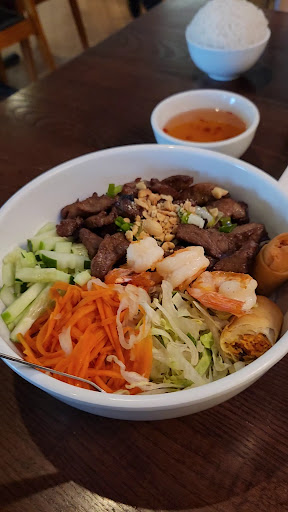 Read moreI am so thrilled to have a FANCY pho place like this in town! I walked in, not expecting to see such an elegant setting! Full bar service and saw lots of good stuff on the menu! We had the lettuce wraps (which they SO did not disappoint), but came in from the cold weather specifically for pho. Broth was flavorful and it was a nice touch to have the beef balls sliced so they were easier to eat (instead of biting a chunk and having the rest splash back into the bowl). I’m not usually a fan of egg roll (traditionally, every family has their own take on egg roll and I’ve always just been biased and like my family’s lol 😁), but egg roll came with our meal and dang! I was impressed there, too! Ate that all up!