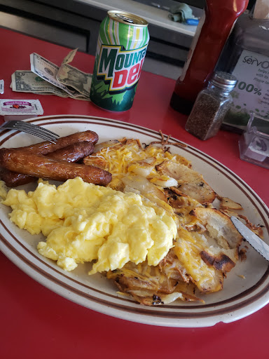 This place, however, is utterly filthy. Like, genuinely scary dirty. I have no idea how they are passing a health inspection. you could scrape crud off the walls with a spatula. The tables and counters and booths and floors are grimy beyond belief. The walls are yellow and the air is heavy with grease and smoke. The wall next to the booth was covered in flecks of food and dirt, the dish fill of creamer was dirty, the ice machine had its door hanging open the entire meal and was grimy and filthy, the ceiling and walls in the grill area were brown and yellow with old grease and smoke. Everything was covered in a thick funk. I didn’t even bother with the bathroom, despite having to get to one urgently after finishing my meal. I had to shower and change my clothes after eating here because I stunk so bad. I was also seated close to the door, and even that was no help with the air quality and stink.