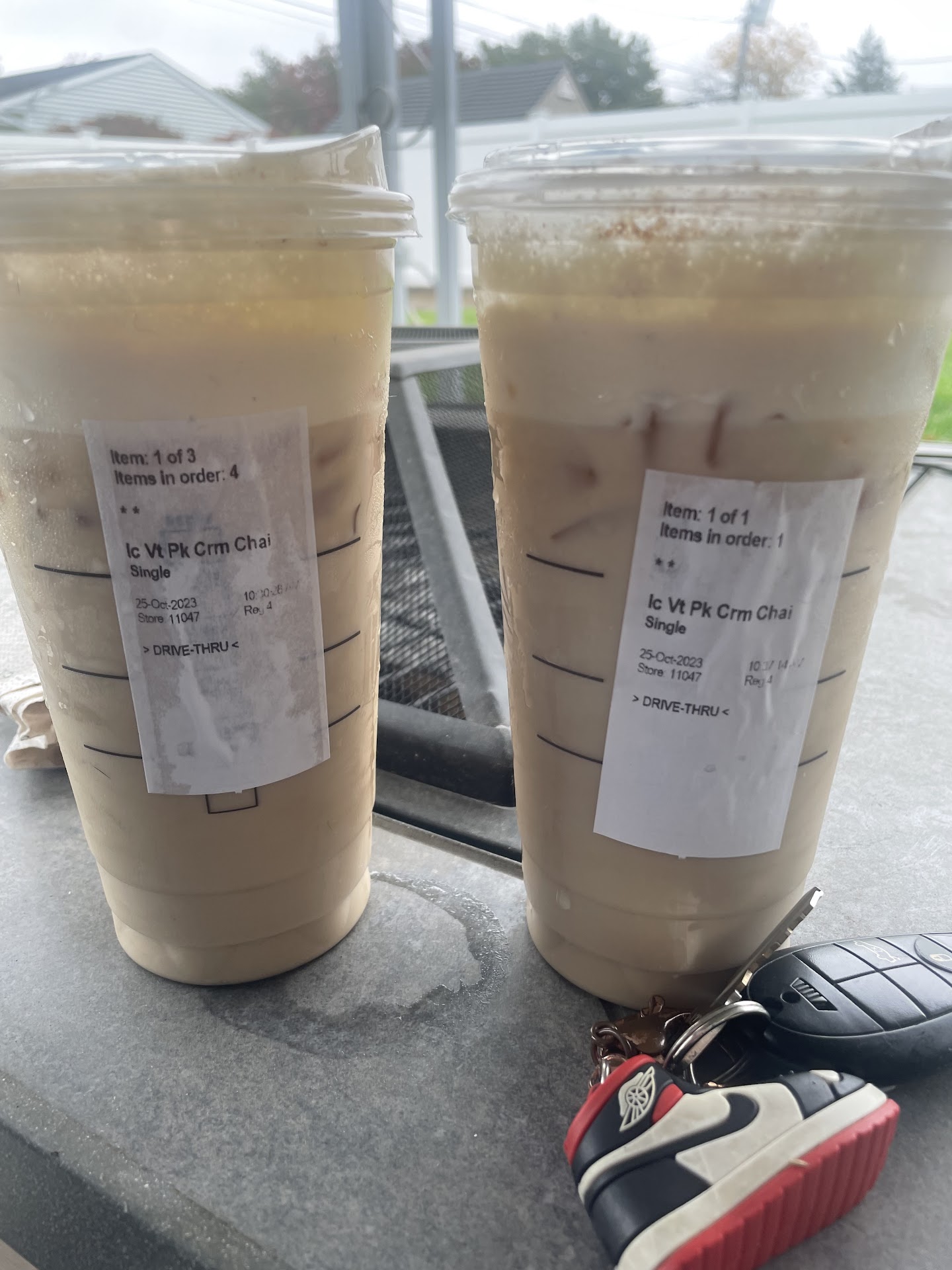 Ā Ā Ā Read moreI go to the drive thru to order and immediately the worker is rude. She never said thank you, youāre welcome, have a good day. She just didnāt respond when I said those things to her so I immediately knew I wasnāt going to tip. I get my drink and sandwich back and I notice the drink looks really light and also didnāt taste like it had any espresso in it. I went back again to return it and they made another one. It tasted the exact same just like a normal chai. Also everytime I order espresso they write it on the slip on the drink and neither of these had it. So now Iām sitting at home with two chais I donāt want and will probably be going to another coffee store after this since Iāve had 0 espresso and it will not be Starbucks bc why in the actual hell am I dropping a dub on a drink I never wanted. Also for being a multi million dollar company, youād think that their lids would actually...