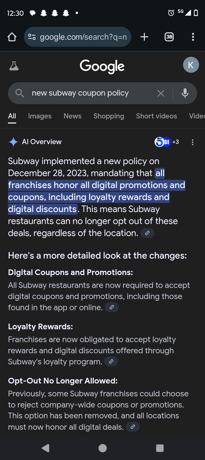Read moreThis was the worst Subway experience I've ever had and I've frequented Subways all over the US. I asked for a gluten free wrap and they gave it to me but acted as if it were a hassle. I was ready to pay and noticed I had a coupon which I wanted to use. I showed the cashier, it was for a buy one get one free with a drink purchase. The cashier said go through the line again to get another wrap so I did. When I got back to the register then she told me I couldn't use the coupon so I had to pay for both wraps. All three employees acted rushed and uninterested in me or my patronage so I will never return to the Subway there on 53rd next to Whiteys. I will drive an extra 20 minutes and go to the store that has friendly employees who ask if they should change their gloves since I'm gluten free and act...