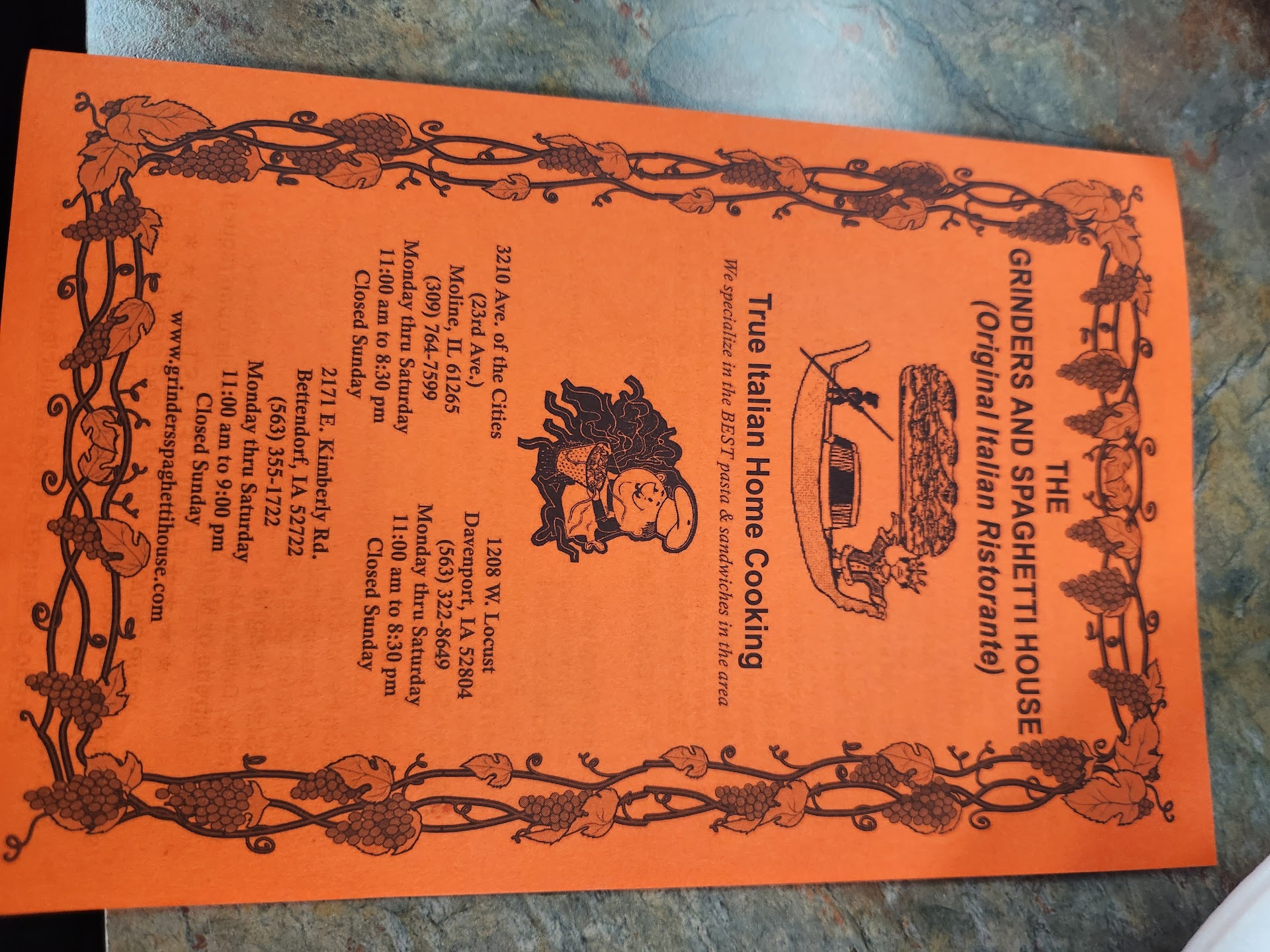 Grinders is one of those spots the everyone is going to like. Their menu items have the home made / hand cut and selected flavors we all enjoy. Something as simple as their lettuce salad shines through with select and hand cut vegetables available with a simple house made dressing, a light but tasty, blend of oil, vinegar infused with Italian herbs and spices. The pasta dishes I tried where very good and flavorful. The two pasta meals I had would be perfect for a date night, one ordering Manicotti which is filled with Ricotta Cheese and the other ordering Cannelloni which is filled with Italian Sausage, then each could have one Cheese and one Meat ( each dish is two stuffed tubes ). The Meatballs were obviously hand made as was the Italian sausage that was actually a Italian Patty ( like a elongated burger and made with a mixture of Beef and Pork ) And ever dish, that is ordered with red sauce, shared the same hardy Meat Sauce. Even the Bread is store cooked and can be order with Plain, with Garlic, Covered with Melted Cheese or both. All the flavors across the board are muted. Most likely to satisfy the masses, but they never lose the care and thought that goes into their recipes. They deserve you trying them for yourself. I believe everyone will find something they enjoy ( remember those...
