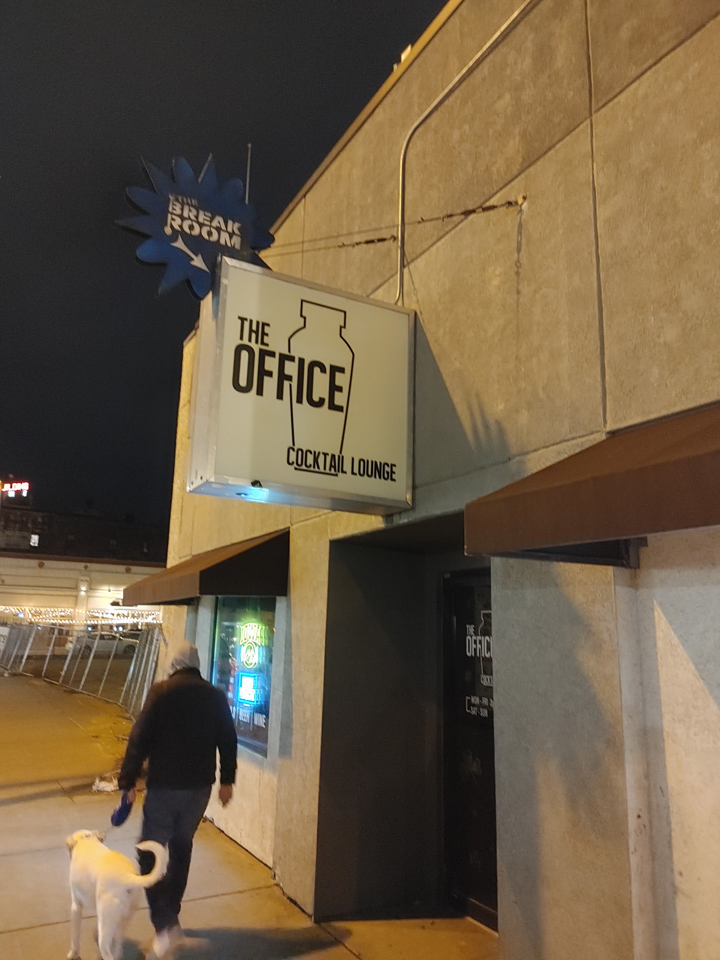The interior is vastly different than I would have envisioned for a place called The Office. The floors are a decidedly cheap wood grain patterned vinyl material of some type. The walls are a painted dark olive green, covered by corrugated aluminum (or steel?) sheet metal on the bottom half of the wall on a good portion of the bar. Strips of accent lights dot the black 2 x 4 foot drop ceiling throughout. There's a few dart machines and one of those TouchTunes music boxes in every bar these days. The bar is a prominent dark granite that runs most of the length of the space. All of this comes together to give the appearance of not quite a dive bar. It has some wear, but the rough edges are clearly clean. It's a good thing - I like it.
