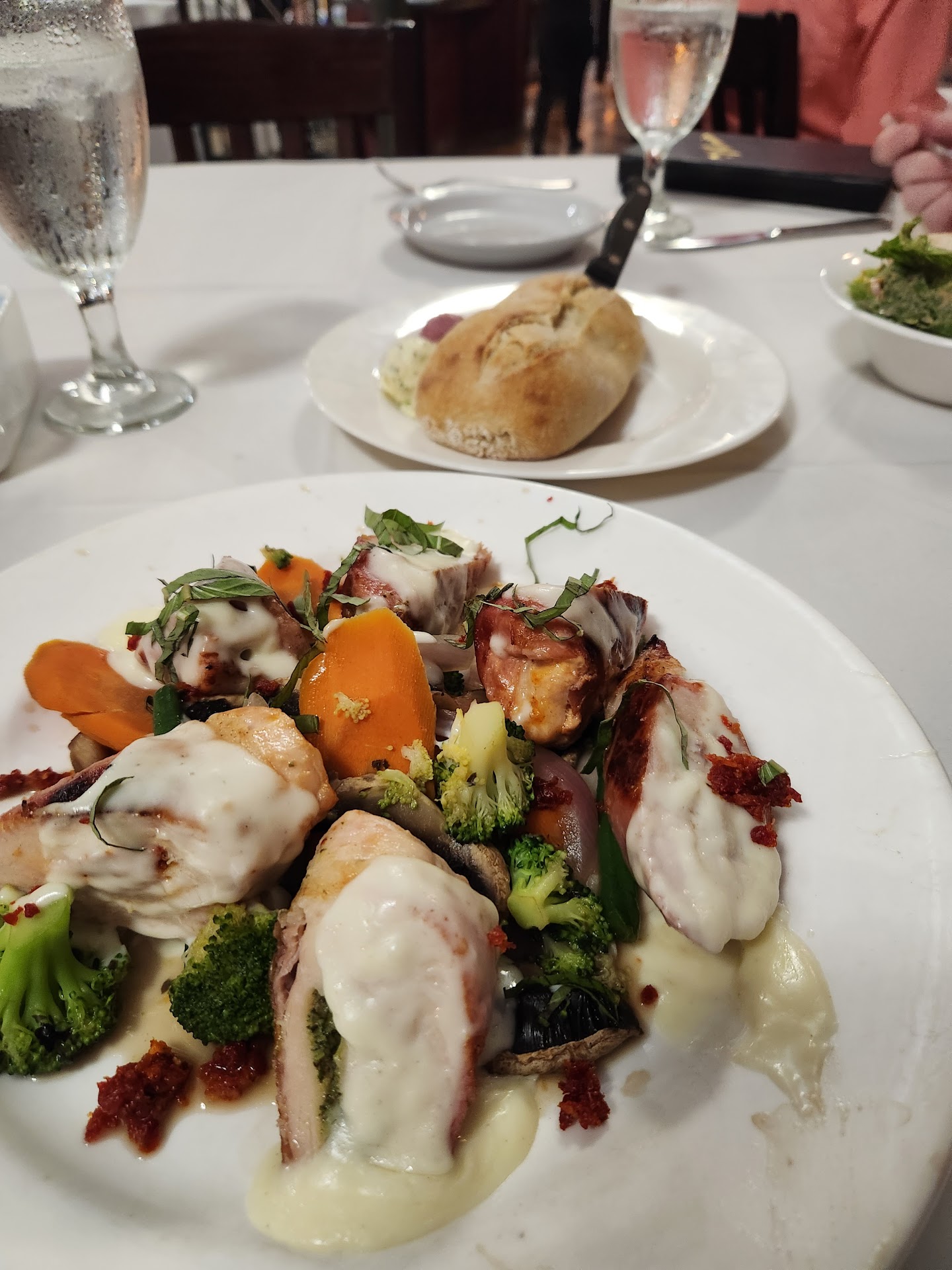 Read moreI came here with a party of 8 and the restaurant was more than happy to accommodate us! This was my first time ever coming here so I didn't know what to expect. The appetizers we ordered were amazing. The spinach artichoke dip was better than anything I have had before, it's just on another level from places like Olive Garden or Applebee's. The pita chips are heavily seasoned and soft with a little kick that's complimented beautifully with the dip! The dill mushrooms were really good too, I didn't think the dill was very prominent but the cheese on top was a nice touch. Not pictured was some fried ravioli one of the other guests ordered, that was also great!