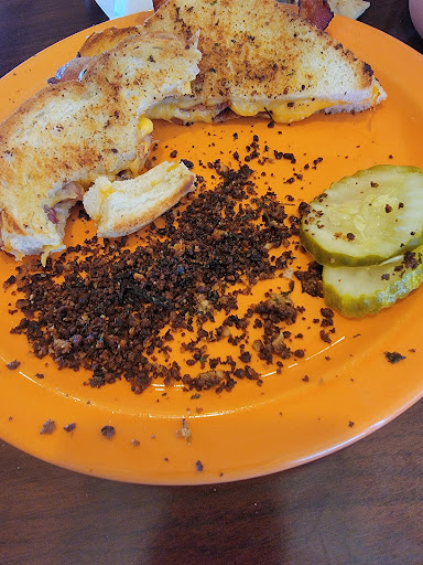 My husband and I had been wanting to try this place for a several months now as we've passed by it, or been across the parking lot from it while at Steak and Shake, many times. We both love the versatility of the menus of family Diner restaurants, so this place, being one of those restaurants, appealed to us for sure! Now to start on a positive note here, their pie is Delicious! 😋👌🏽 My husby had the Strawberry Rhubarb pie and that was probably the best of that kind I've ever had! Yum! I had the Chocolate Silk pie and it was good for sure! Nothing out of the ordinary, or special about it, just average but good, for sure again. 😊👌🏽 Now my husband really enjoyed his breakfast dinner of bacon, eggs, hashbrowns and pancakes, But, the serving sizes and pancakes were the Smallest of any restaurant we've ever been too.. He did Not get filled up so that sucked for sure. I got a bowl of chicken noodle soup with a Reuben Sandwich. The sandwich was super Delicious! One of the best I've ever had for sure! 👌🏽😋😍, the soup, not so much.. not really any flavor at all. The service was great though as our waitress was definitely as accommodating as she could be with showing us some things, as this was our first time there. Great service and atmosphere I can say for sure! 👌🏽😊 With the serving sizes so small though, I'm not sure if we'll be going back to this particular Diner, but I would recommend it to others, just with the clear caveat about the...