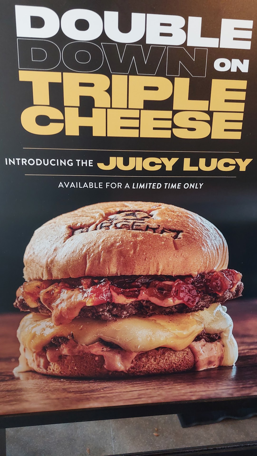 Read moreSaw the Juicy Lucy being advertised and decided to try it out...but the expectation is wayyy different than the reality that is served here. It wasn't a lunch rush or anything for this burger to be served so poorly in quality and presentation. There are signs in restaurant talking about grade A beef being better than competitors but I've NEVER had worse looking and tasting beef than from here. Looked worse than undercooked high school cafeteria meat and I even but into two hard cartilage as I chewed the beef. Is it so fresh that they grounded up some bone cartilage or cow teeth in this beef? Really disappointing lunch. No complaints about the cashier service and other cleaning staff working there. I used my deal for first time making an order on the burger fi app and those were fine but to pay $13 after tax and tip for a burger I can get at McDonald's for $1 is horrible. I'm a big cheese lover but the flavors melted in here weren't satisfying, there was barely any fi sauce or sweet relish spread...overall, wouldn't return here and would recommend shake shack with wayyy better smash cheeseburger melts and higher quality taste and...