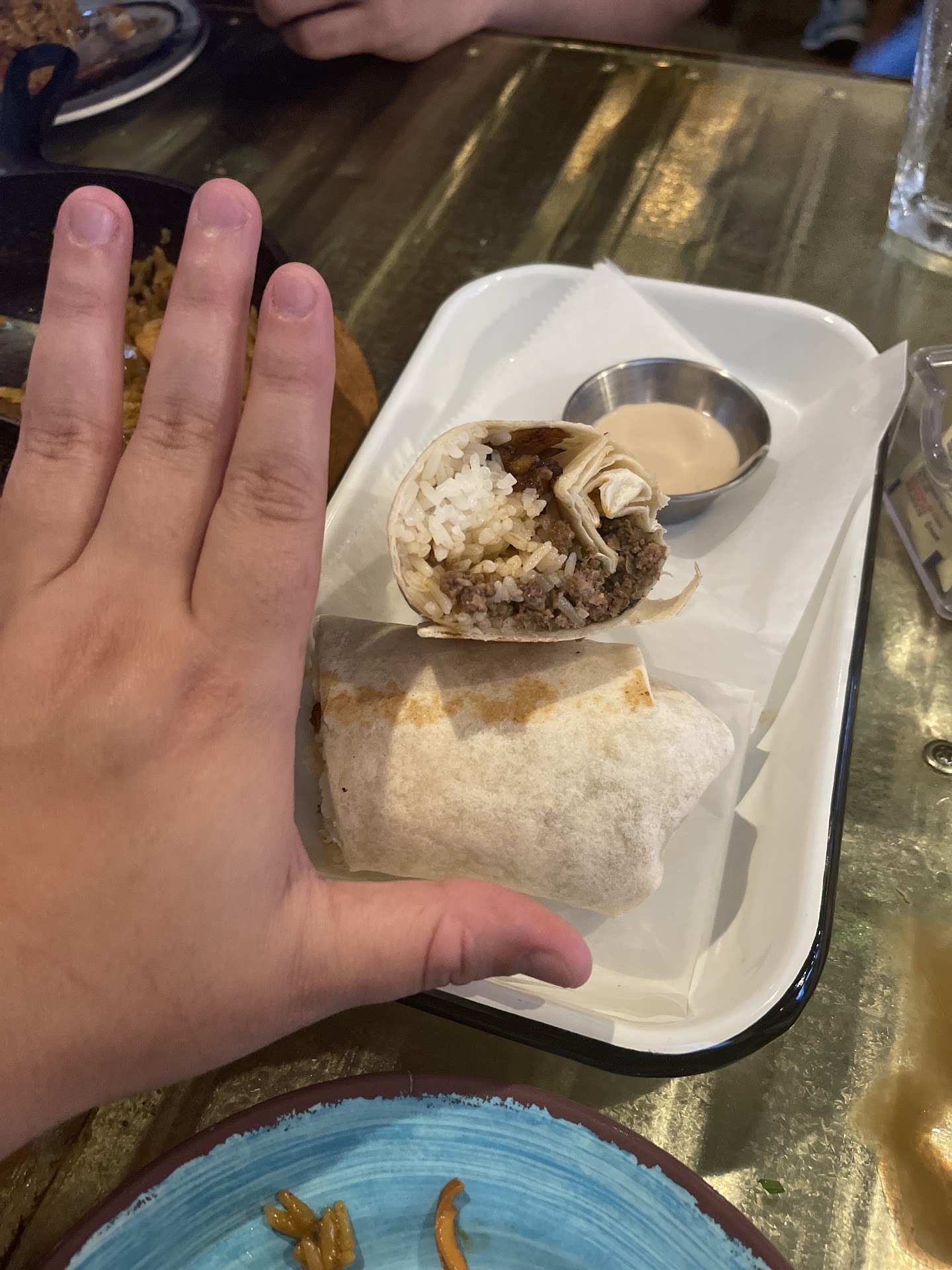 Read moreFood tasted great, i really enjoyed the flavors. Knocked a star for terrible service and knocked a second star for ridiculously tiny portions, everything we ordered looked like a kids meal portion it was nothing short of comical. We are three people, werent even that hungry and we ordered 4 appetizers and 3 entrees to be complete. Total was about $125. First regarding the service the time we waited for entrees after apps exceeded an hour which i have to attribute to someone forgetting to put our order in. No one checked on us in that time, water didnt get refilled, we asked for coke about four times before getting one. The sushi roll was super unique and refreshing we loved it and its the only item i think was normal size. second was the tostone con chicharon it was delicious but only came with three tiny bites. Queso fundido, ok but nothing special and again, tiny. The arroz con mariscos was not only tiny but the rice was rock hard and under cooked-for the hour we waited this is unacceptable. The burrito was itty bitty comparable to $2 tacobell burrito, flavors were ok but overall very plain. The taco and bao bun as an entree is quite literally a joke ill add a pic of a small handed person grabbing it, was a total of 4 bites combined for the whole plate. Overall even though the food was good id never come back based in the portions and the...