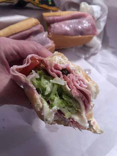 from the beginning I had to repeat 3x that it was a large italian on white then after the third time asking me what i wanted on it he dumped hot peppers all over it - I DID NOT ASK FOR THAT!
