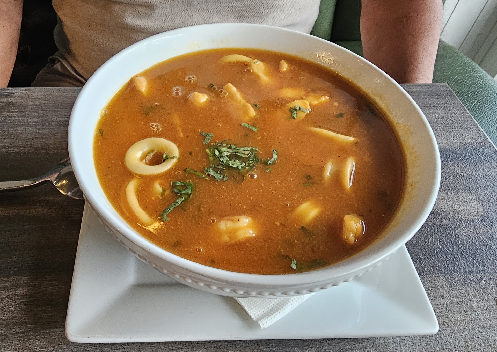 I came here because the reviews for this place were extremely good, I don't think I even saw a negative one. I was greeted by an older woman when I entered who never ended up telling me her name and also took my order. I ordered the Vuelve A La Vida which from the description was like Leche de tigre but with extra seafood. She made sure I knew I what I was ordering(probably because it didnt come with a description on the actual menu in restaurant) but I always do my research online before trying a new place. My food was brought to me by another server, a young man, who was very kind and attentive. He asked if I wanted any sauce with my ceviche, I've never had sauce with ceviche so I asked him what he recommended and he said the aji verde if I didn't want too much spice and it was sooooo good. I can't believe I've eaten ceviche all this time without it. There was a mussel in the ceviche that did not taste fresh and threw the taste off, and I think there was a piece of it not on the shell in it as well because I tasted it again in one of my spoonfuls but other than that it was delicious. I know I'm weird for continuing to eat after tasting something strange but the rest was not bad at all and I was HUNGRY. The Vuelve A La Vida was $19 but at least double the size of a regular Leche de tigre, I couldn't even finish it. I also ordered a chicha morada which I loved and it was really yummy. The lady that greeted me and initially took my order ended up getting a large party of 6 and seemed to be paying more attention to them than me but the young man, (I forget his name but my check says Chito) was there checking on me making sure my food and everything was OK and if I needed anything else. Eventually the woman came and I asked her for a to go container and a cup for my beverage as well, I felt bad asking for the cup after the container but I guess I should have specified that I wanted to take everything. I wanted to take the cancha too but i felt bad asking for another container. I assumed she would bring me the check after asking for the rest of my food to go but she was preoccupied with her party of 6 so eventually the young man came to check on me again and I asked him for the check. I really wanted to ask if they split the tip because I felt he deserved it more but I didn't want to seem impolite so I left $15 on a $21 check in case they did have to split it. Overall it was a pleasant experience, good food, good atmosphere, good service, and the restaurant was...