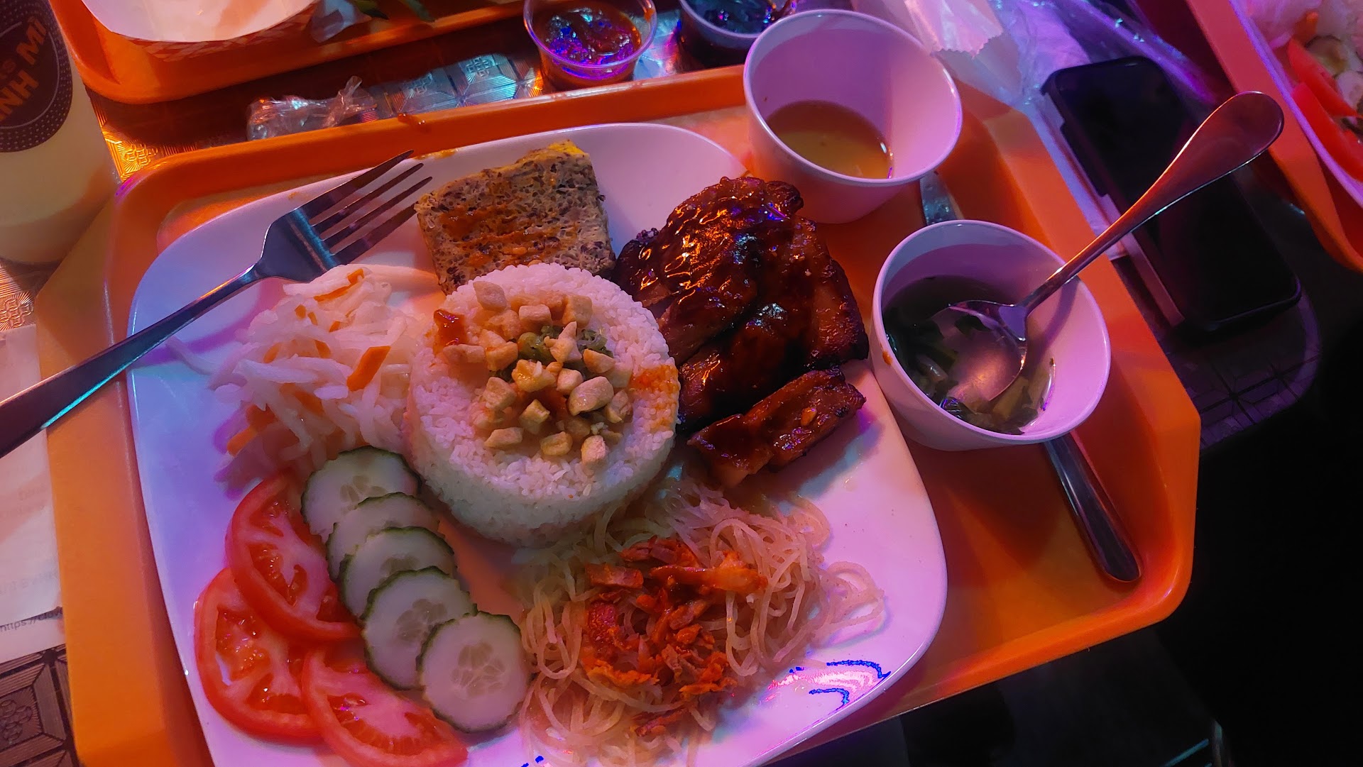 I returned last night with my wife and ordered the cash register's recommendation of R4 from the Rice Combo Plate and it comes with a small veggie soup, rice, three meats, some noodles, sweet and sour sauce liquid, and some slaw. Everything was flavorful and I recommended that plate for anybody wanting to try something new aside from banh mi and tea. I also got the Piña Colada tea with no boba and that was my favorite as well better than Paris By Night.
