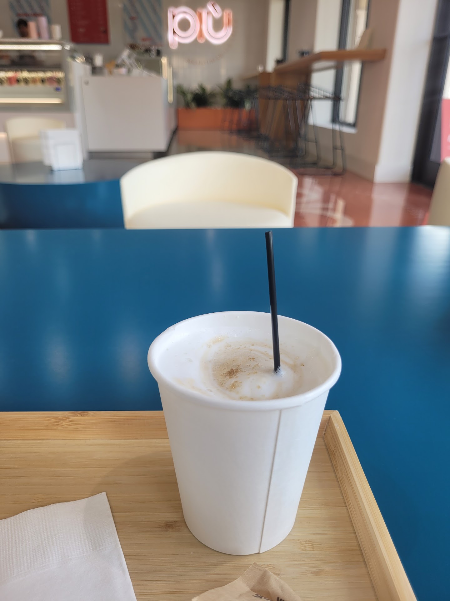 When you walk into Più, the aesthetics are just GORGEOUS!!! They thought of every fabulous detail from the marketing to color scheme, design, modern vibe to the pet friendly space. It's stunning design! I love the bright orange color and the wavy ceiling. Can't miss this spot.