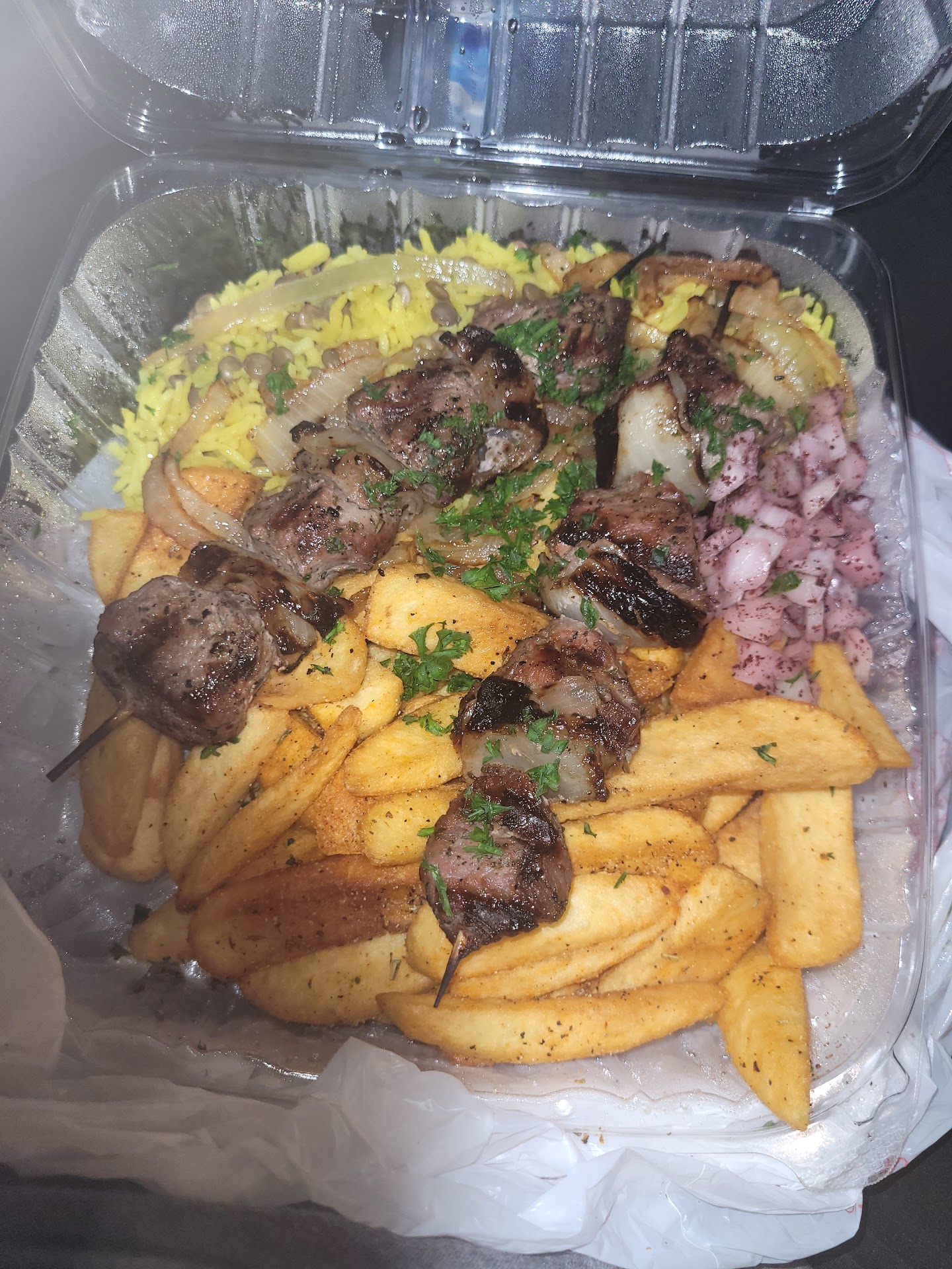 To tell you they are top of the line middle eastern food.... they are not BUT you not paying as such. You can't compete with a real charcoal grill restaurants but they are as close as you can ask for. The meat flavor and the tenderness 3/5 , the sides such as Almond rice, Mujadra, yellow rice even the steak fries 4/5, the salads are fresh and generous portions 4/5, pita bread 2/5, the Hummus and babaganush 3.5/5.