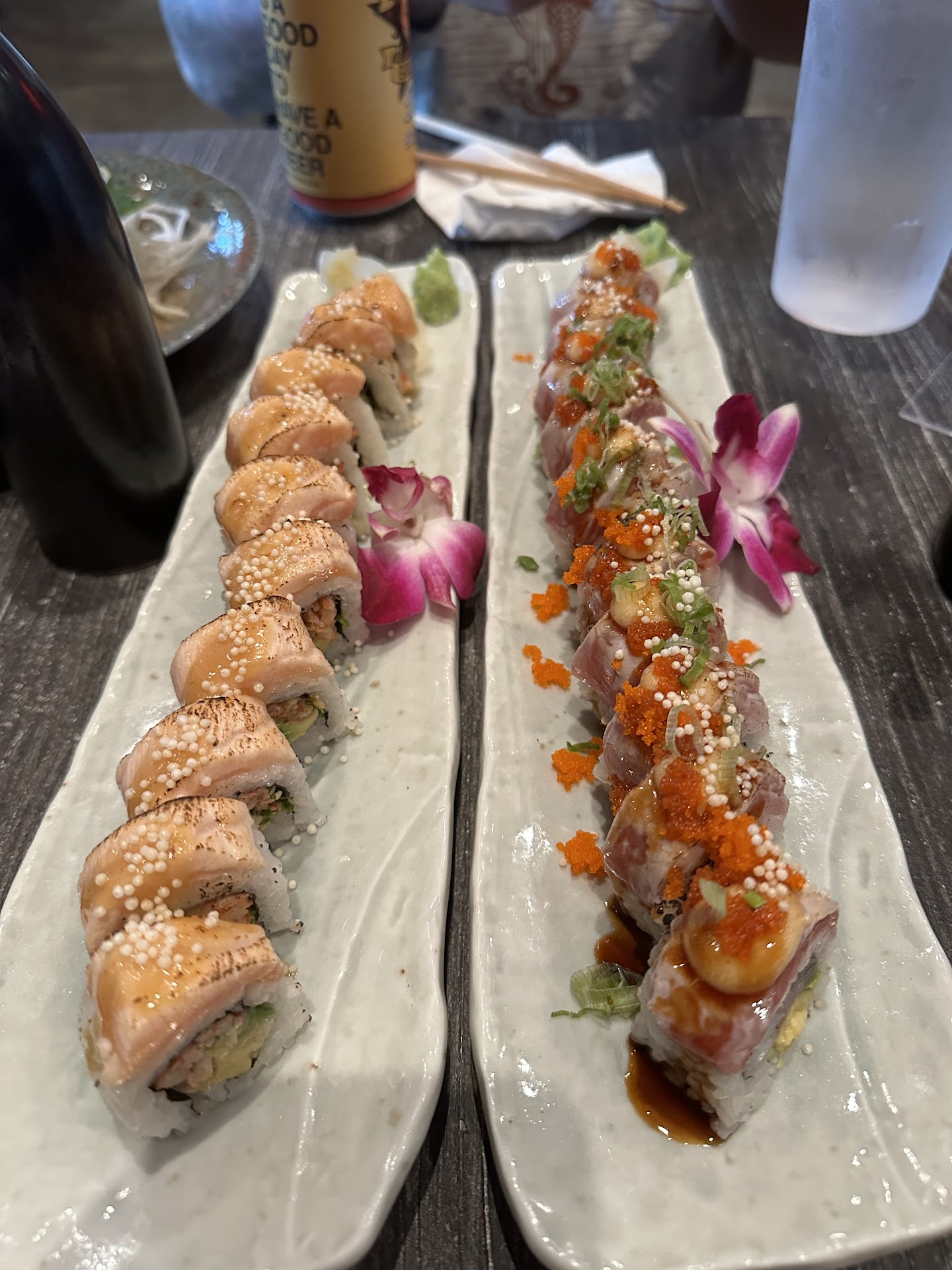 Read moreWe were excited to try this place such a bummer !!!! Place was dead when we sat down we were the only table and two people at the bar. Lexi was our server she was sweet and attended to us quickly we ordered a few appetizers those came out fast but our sushi rolls never came out and we asked Lexi 45 min after we ordered what was going on, and she went and asked the sushi chef and he told her it was going to be another 35 min until we got our rolls!!!!!! 🤯 then two people who came way after us got theirs before us and we ordered before them. We literally ordered three simple rollsssssss !! We then figured out that he was making all the Uber eats orders first and making the guest dinning in wait almost an hour for their sushi the two guest sitting at bar got really upset and left pissed off and the sushi chef thought it was funny We asked for the check and then sushi chef looked at us and laughed and shrugged shoulders Very unprofessional. We will not...