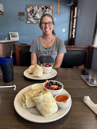 We both ordered chicken wraps and sides of fresh fruit. They were good, the fruit was fresh and sweet. I loved that it was local as well. The wrap was large but had less chicken than I would’ve liked and was more lettuce. The chicken was also chopped very small so it fell out easily as you ate it. The flavor of the chicken was good though and especially so with the added buffalo sauce.