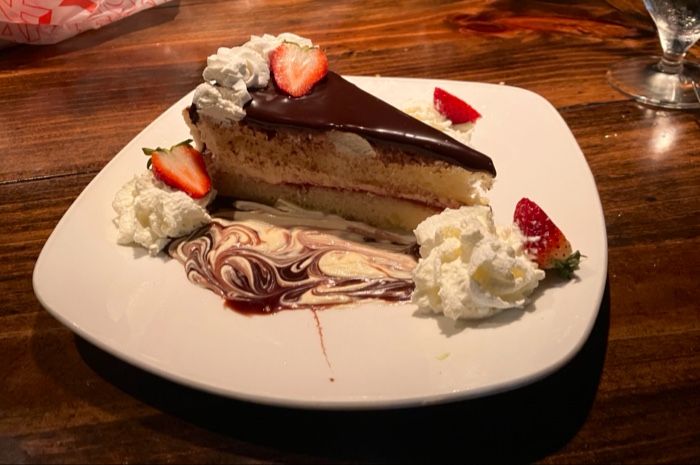 Finally, it was time for dessert. We thought they would bring the dessert out on huge round plates to dispense among the tables as there were 32 of us present. But, of course not. Each server brought out ONE dessert at a time, then went back to the kitchen, so it took a good 20 to 25 minutes for everyone to receive theirs.