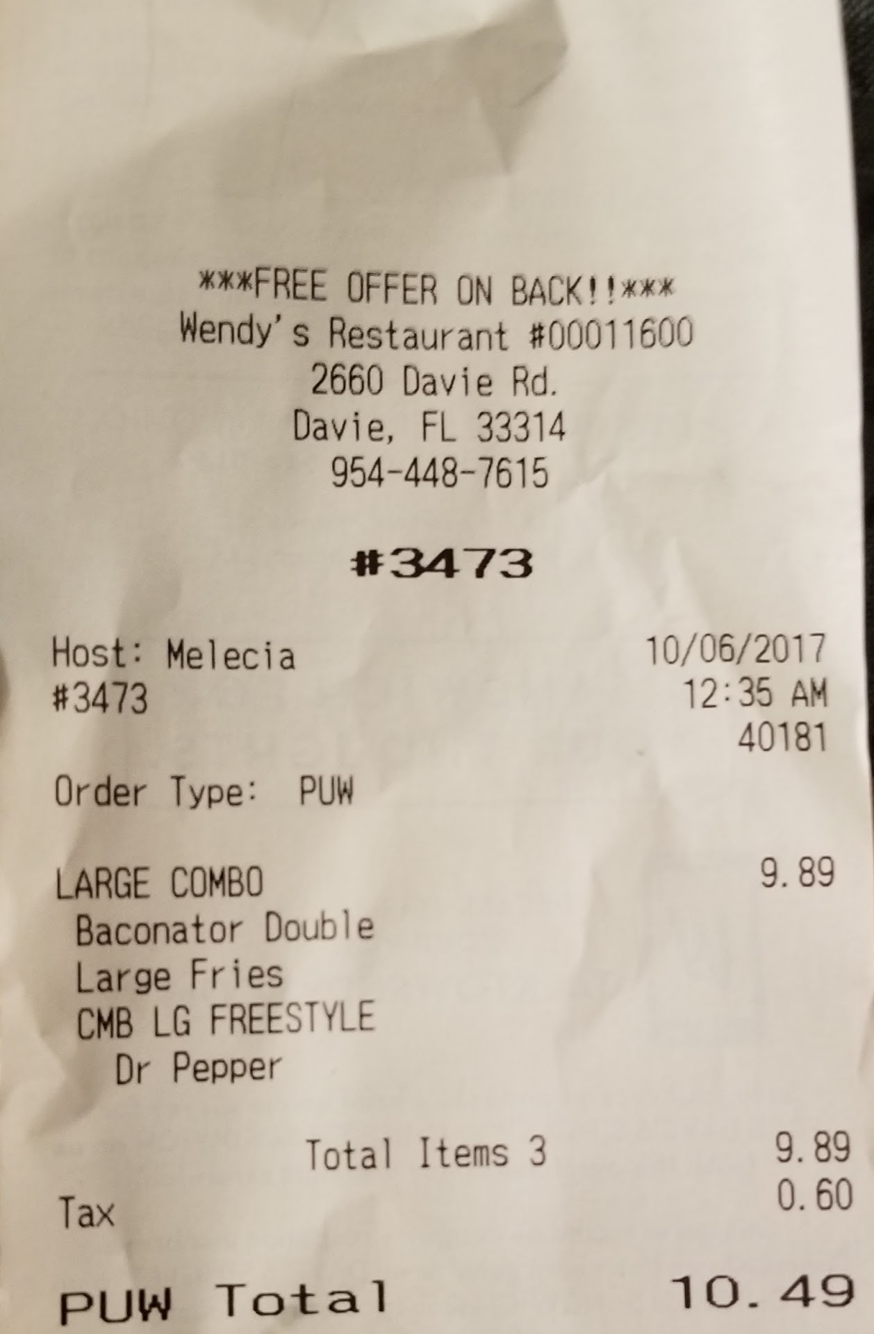 Read more2660 Davie Rd, Davie, FL 33314 First of all Im Ethical, Wendys has a sign that says "Speak out" I assumed there would be no retaliation because it was illegal.