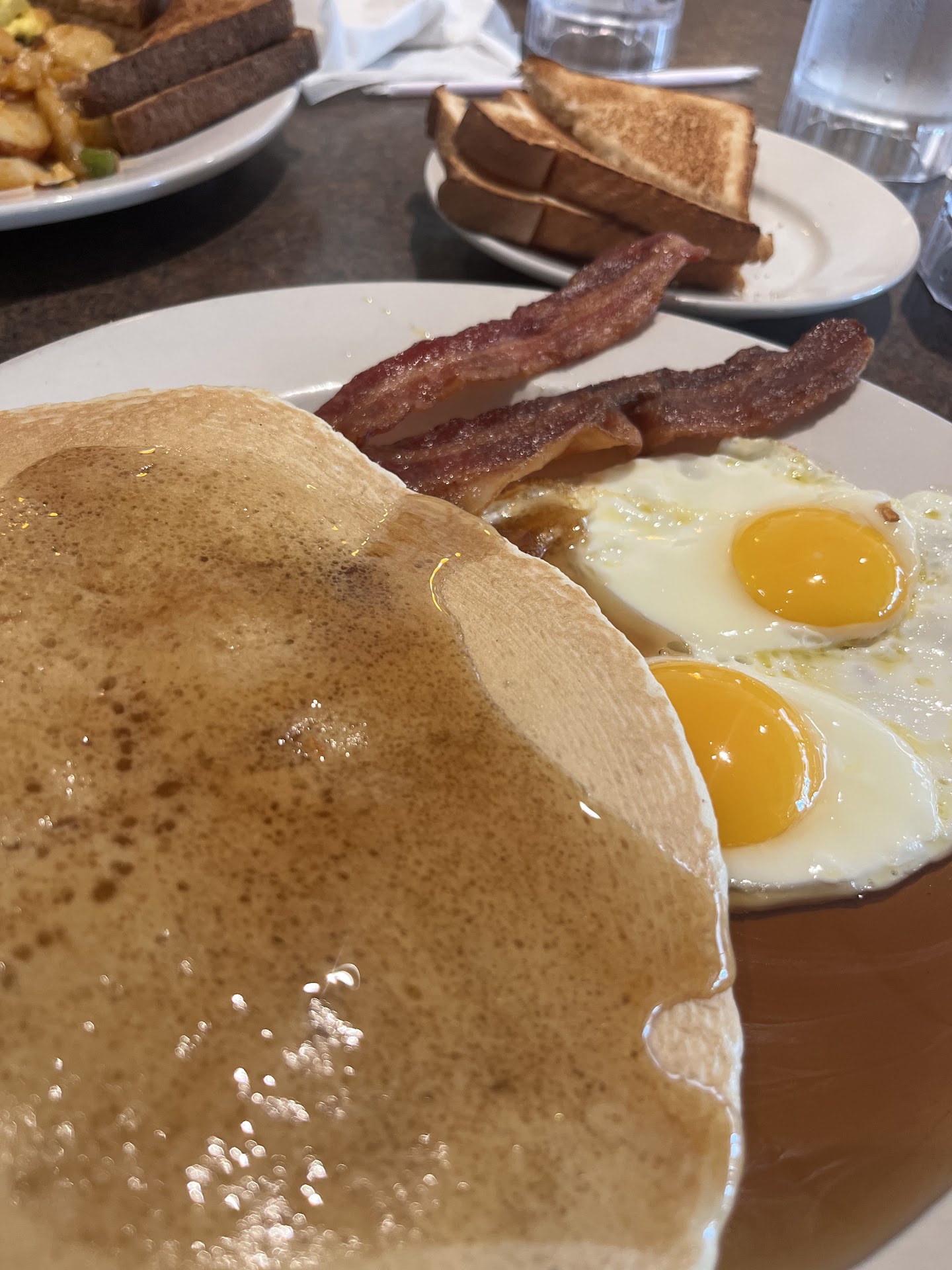 Our waitress quickly helped us with drinks and order and the food was out within minutes. The choices we had were amazing. The portions large and if course we cannot overlook the attentiveness of the staff asking if we were ok, if we needed more coffee, if we needed anything else.