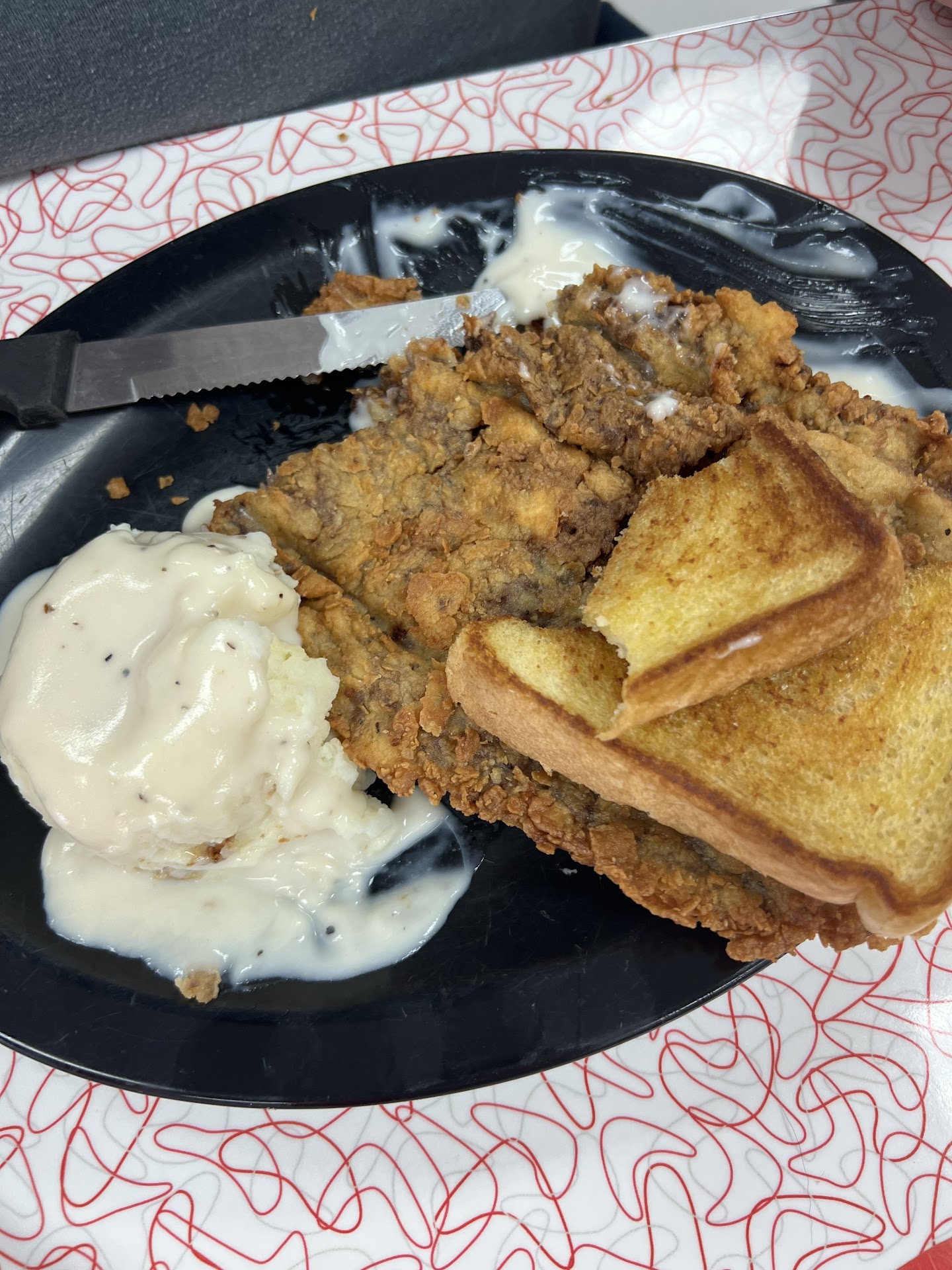 We ordered fried mushrooms and cheese curds (they were great) along with an assortment of salads, burgers, fish, chicken fried steak and sandwiches. The price point is great! We love a good homey diner and that’s what we got. Spent around $120 before tip for our entire meal and still had leftovers. It’s definitely a town staple and you can tell everyone kinda...