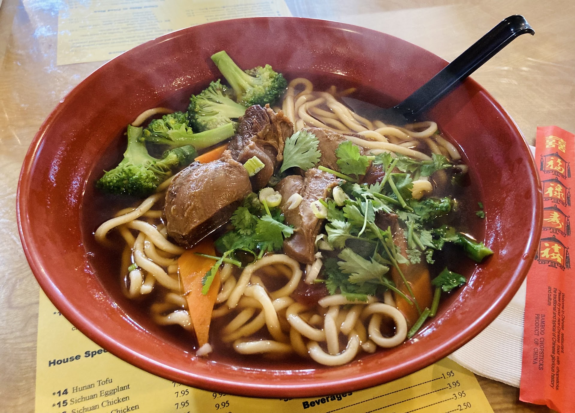 Read moreEating here feels like going home. Tucked away in a corner framed by arching red-glazed buildings, Noodle City is a hidden gem in Davis. I got the five spice beef noodle soup ($12.50), which arrives piping hot with chunks of flavorful braised beef, their specialty soup, and housemade noodles. You can easily tell the noodles are handmade from their unevenness and unrivaled bounciness, delightful mouthfeel when chewed. "Homemade" and other synonyms are most apt for Noodle City, it truly feels as if you're sitting down to a meal prepared by the best version of family cooks. If you've watched “Ratatouille,” do you remember that scene where the critic tries the dish and is whisked back to his childhoood eating a dish prepared with a mother's love? You might have that experience when sipping the soup at Noodle City; their recipes bring that familiar touch of a home kitchen with the refinement of restaurant service.