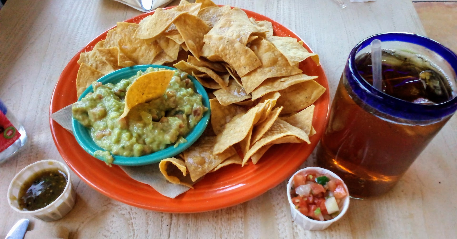 Read moreOur first time to this location, as we recently moved to Davis. I'm disabled and use a walker and it was a bit of a struggle getting through the line, getting salsa, and moving around with the tight spaces. Nothing against the college students that work there, but the young man behind the counter taking our order seemed a bit bothered and put off when I asked a lot of questions about their drinks. And nobody offered to help us carry our drinks, etc to our table. We got our chips and guacamole right away, and the chips were okay, but the guacamole needed more flavor. Our meals were delicious, I loved my enchiladas, but the rice and beans were a bit bland and I had to put salsa on them. My boyfriend's Santa Fe Nachos were amazing. Will we come back? Maybe. There are lots of other Mexican restaurants to try...