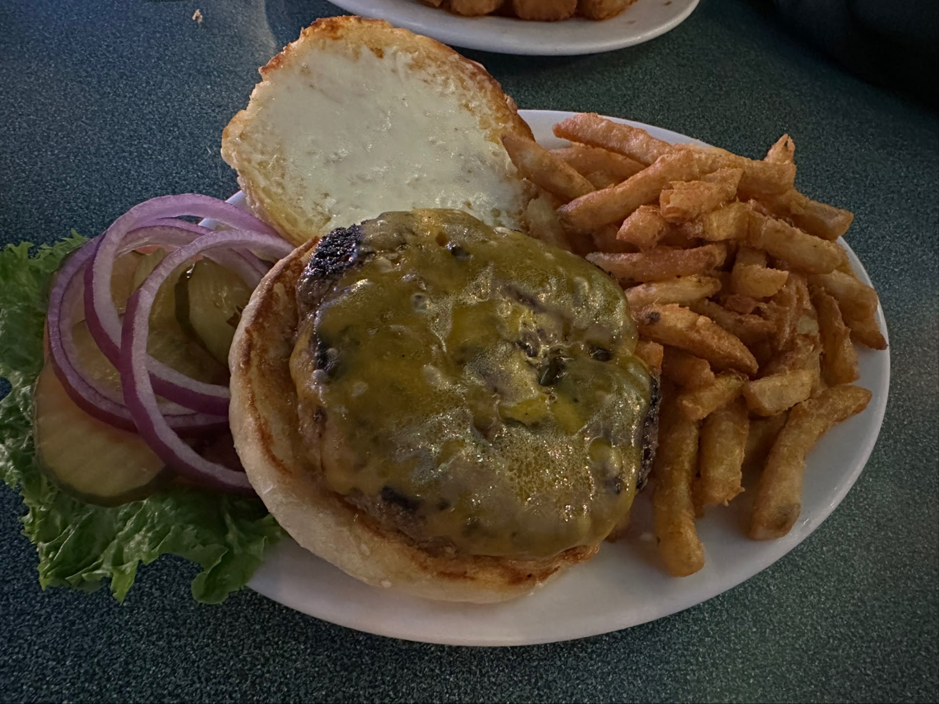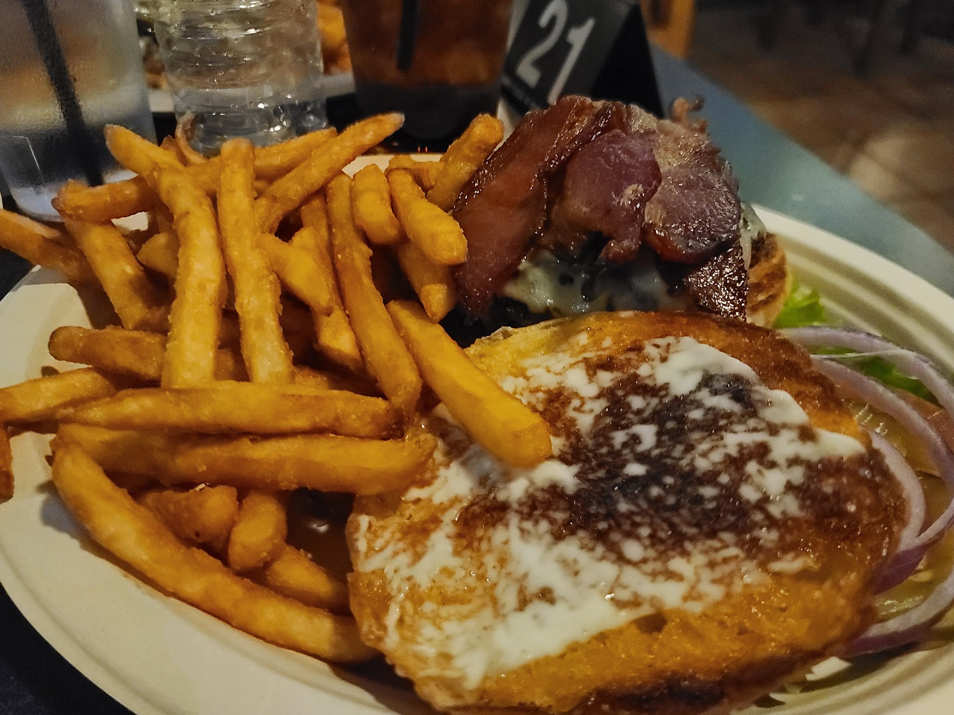 The food here is a little bit on the pricey side but is still quite filling. The burgers were quite greasy but remained on the gourmet side. I ordered the mushroom and swiss burger with a side of fries. When I got my dish, I was presented with the beef patty, lettuce, onions, pickles, tomatoes, and the bread all separate, requiring me to have to assemble my own burger. This was a first for me but wasn't an issue in any way. The water here tasted a little bit strange but wasn't bad enough where I wouldn't drink it. The food itself was delicious and I received a generous amount of mushroom and swiss. Food wise, this establishment gets a 4/5.